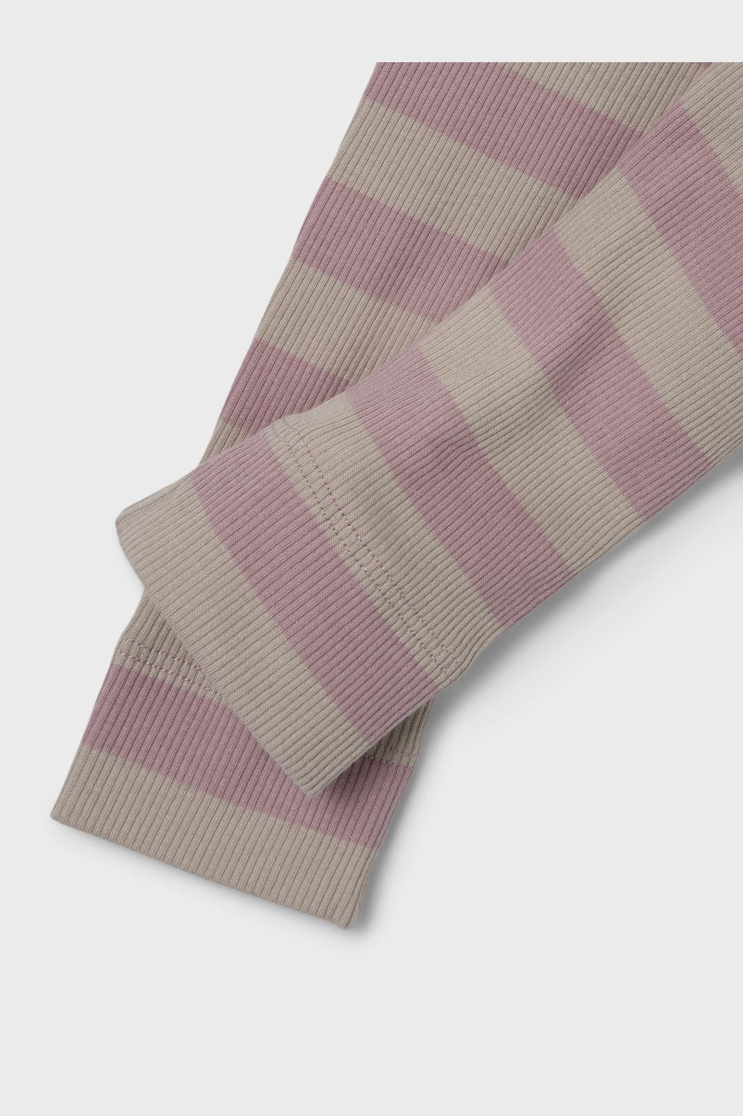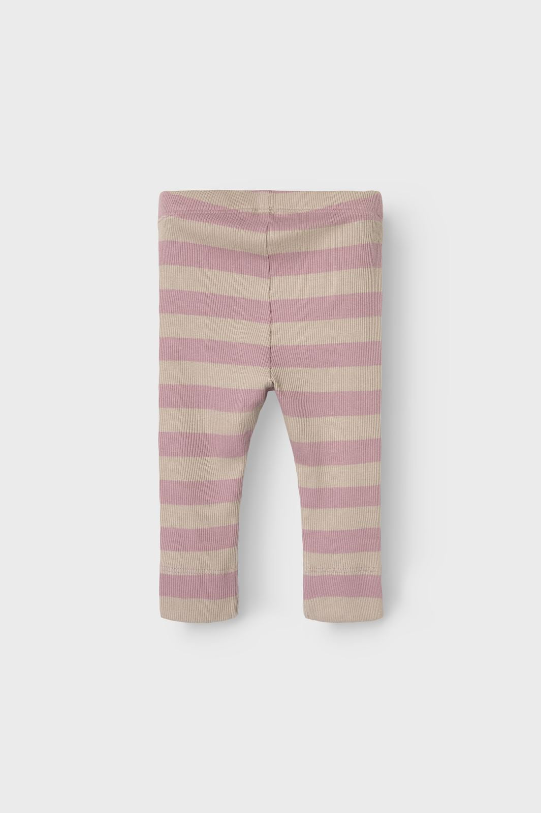 De ribgebreide stof met verticale strepen in beige en lichtroze geeft de leggings een eenvoudige en tijdloze uitstraling.