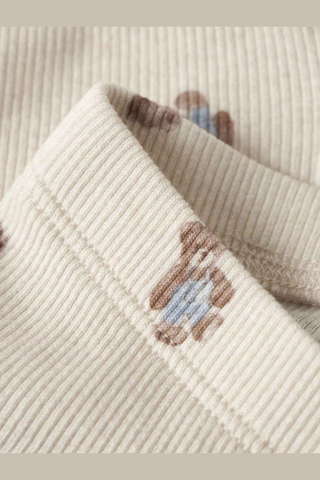 Lange onderbroek van Name It in beige met een patroon van kleine beertjes over het hele oppervlak.