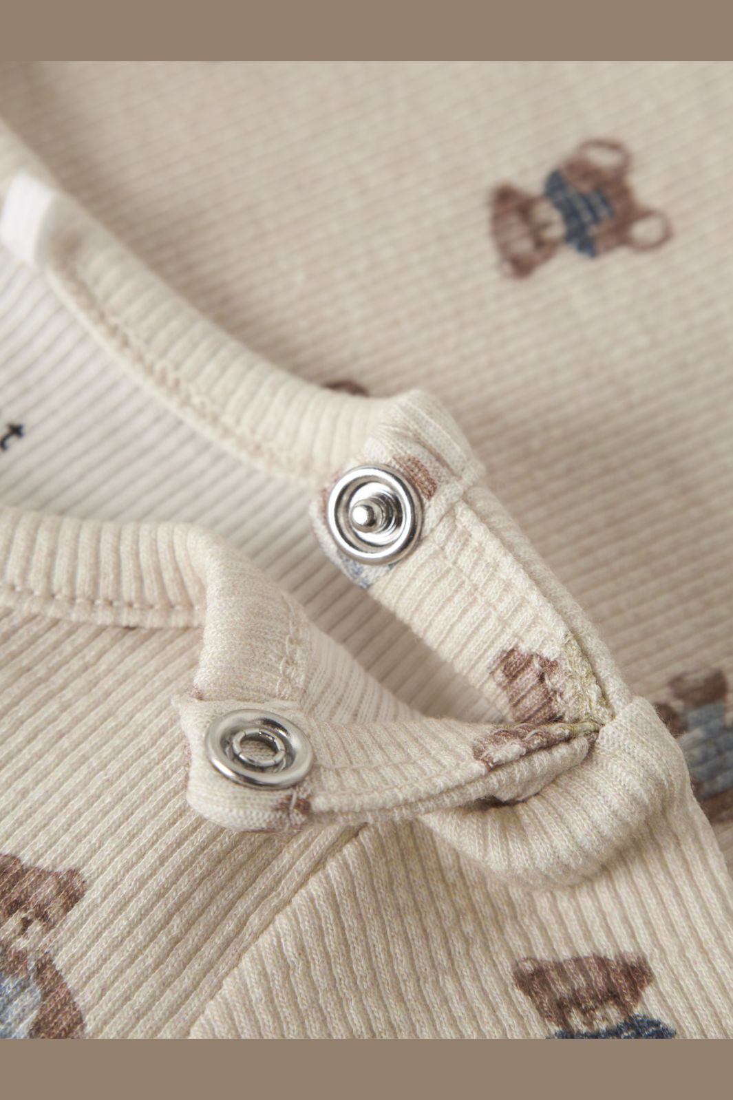 Body van Name It in een beige gemêleerde kleur. De body heeft een ribgebreide stof met een berenprint over het hele oppervlak.