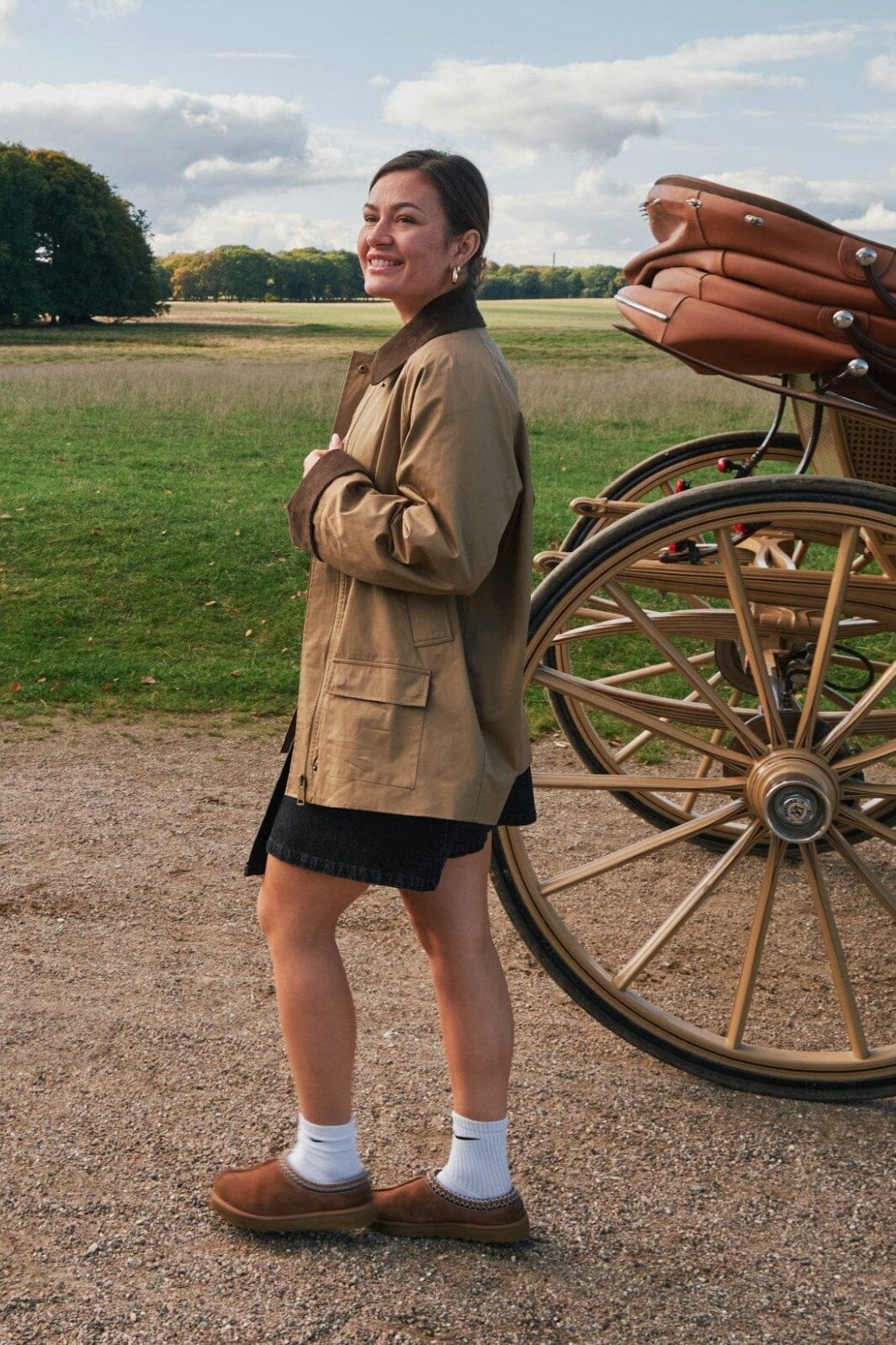 Bruine jas van Neo Noir met corduroy-kraag en 3/4 mouwen. De jas heeft een relaxte pasvorm en praktische zakken aan de voorkant. De rits en drukknoopsluiting maken het gemakkelijk om te sluiten.