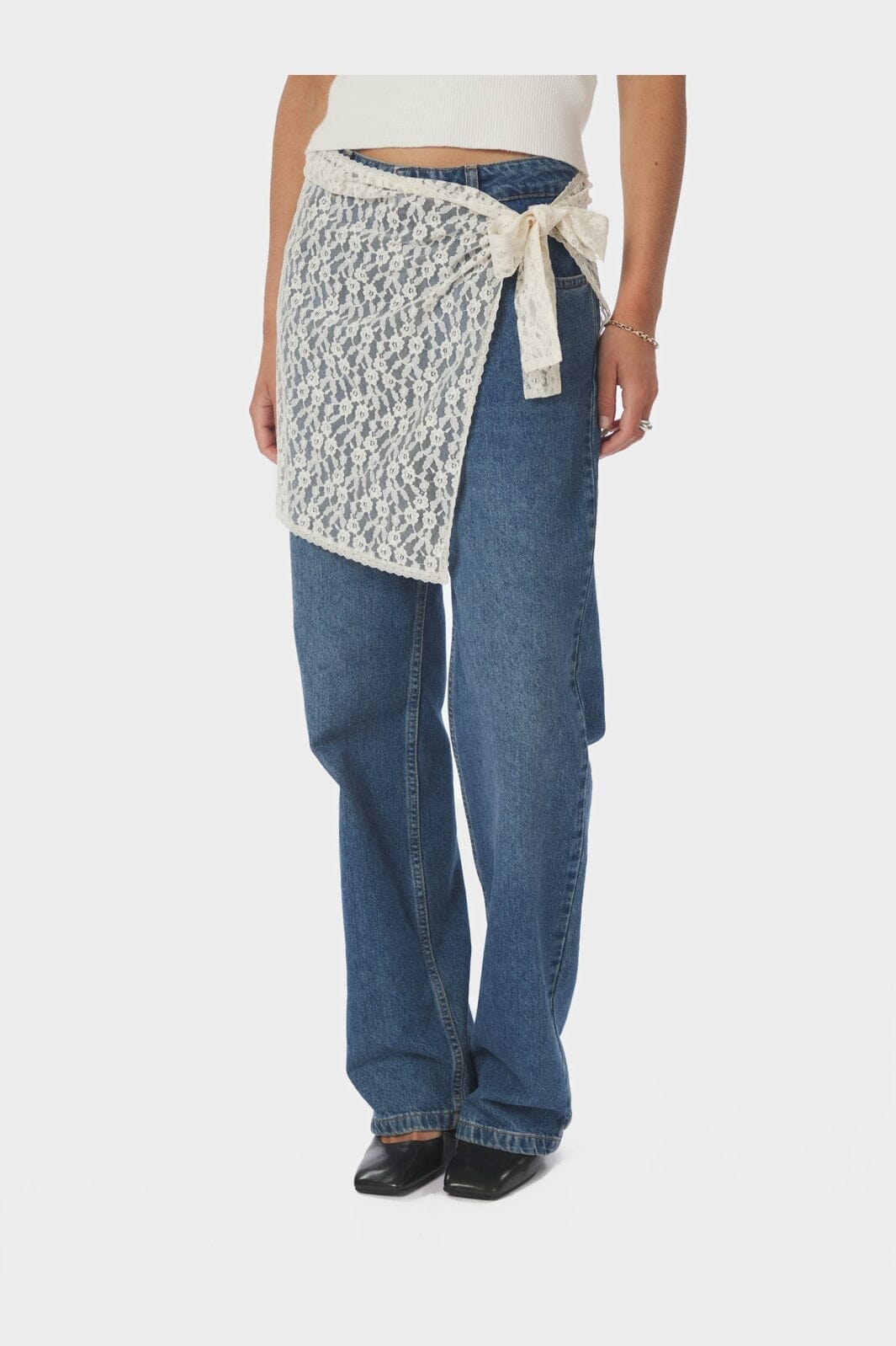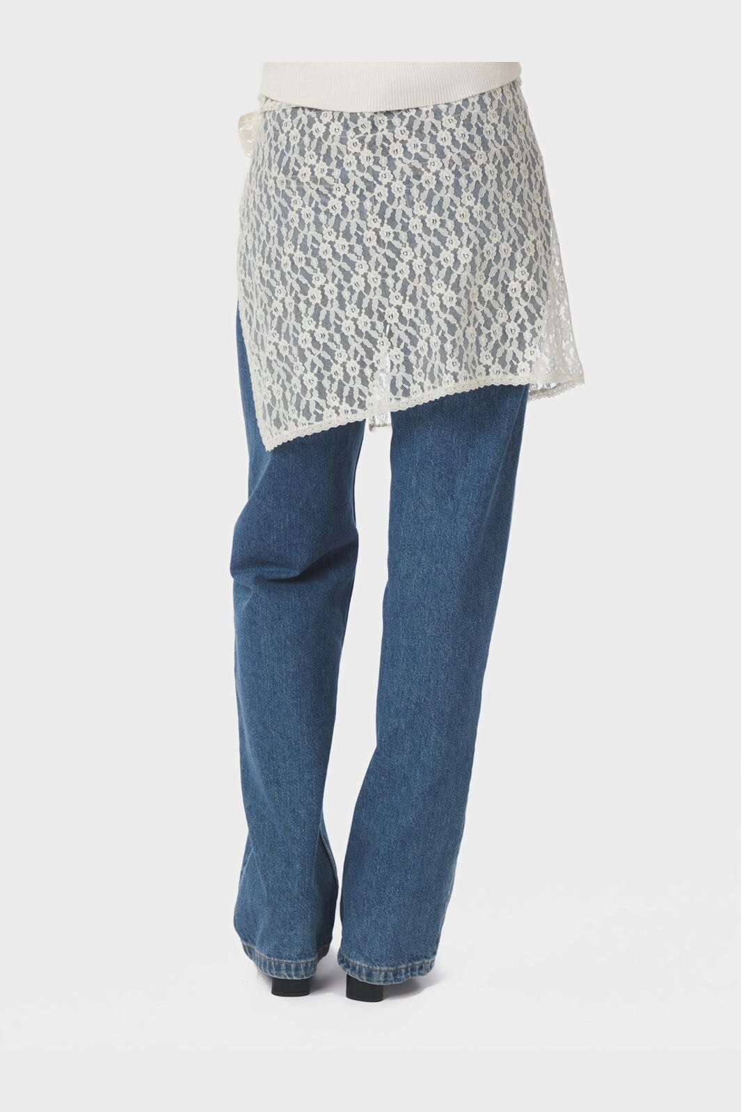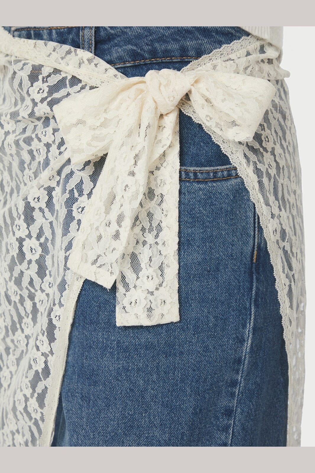 Wikkelrok van Neo Noir in crèmekleurige kant. De rok heeft een bloemdessin en wordt aan de zijkant gestrikt.