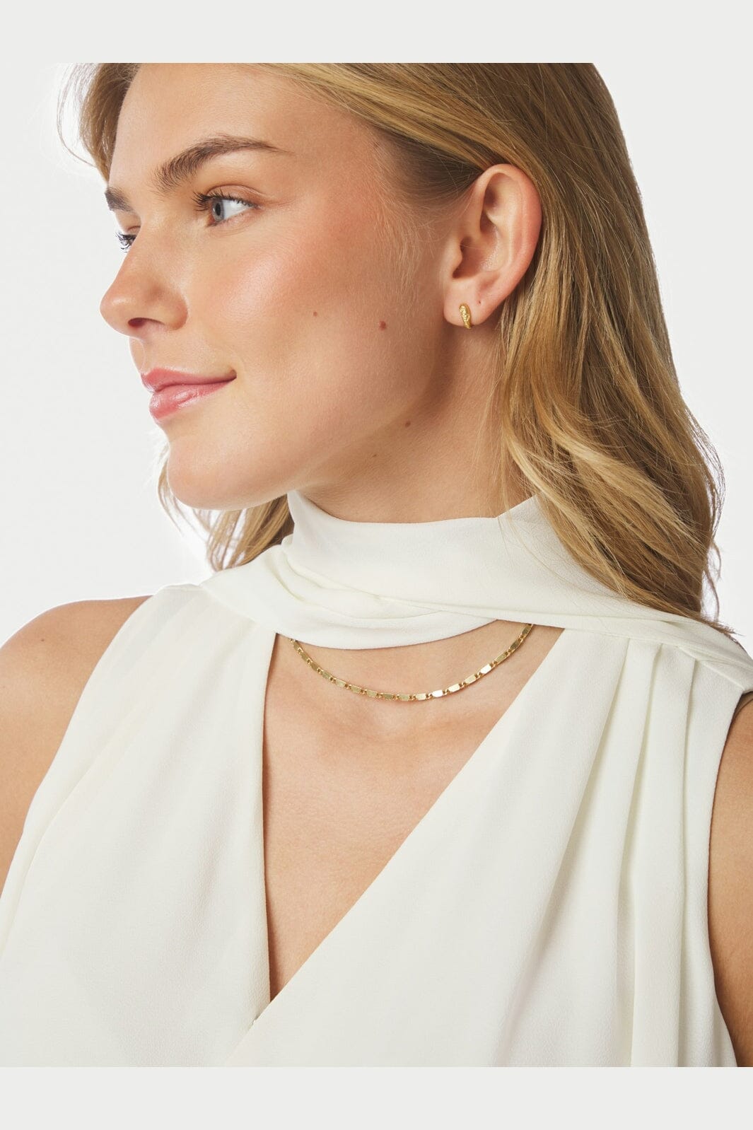 Chiffontop van Neo Noir in offwhite. De top is gemaakt van chiffon en heeft een V-hals, strikdetail en een ballonvormige onderkant.