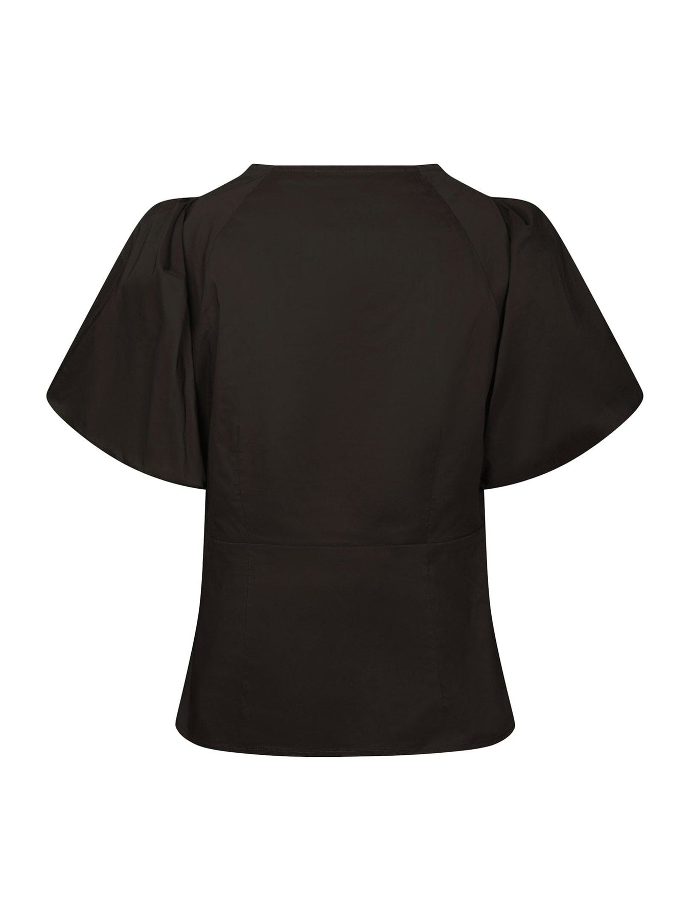 Bruine blouse van Neo Noir, gemaakt van een katoenmix. De blouse heeft korte mouwen en een getailleerde pasvorm met een verborgen ritssluiting.