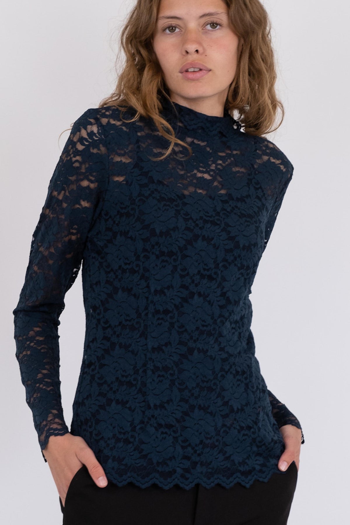 Neo Noir Liza Laceflower Blouse Kleur: Navy