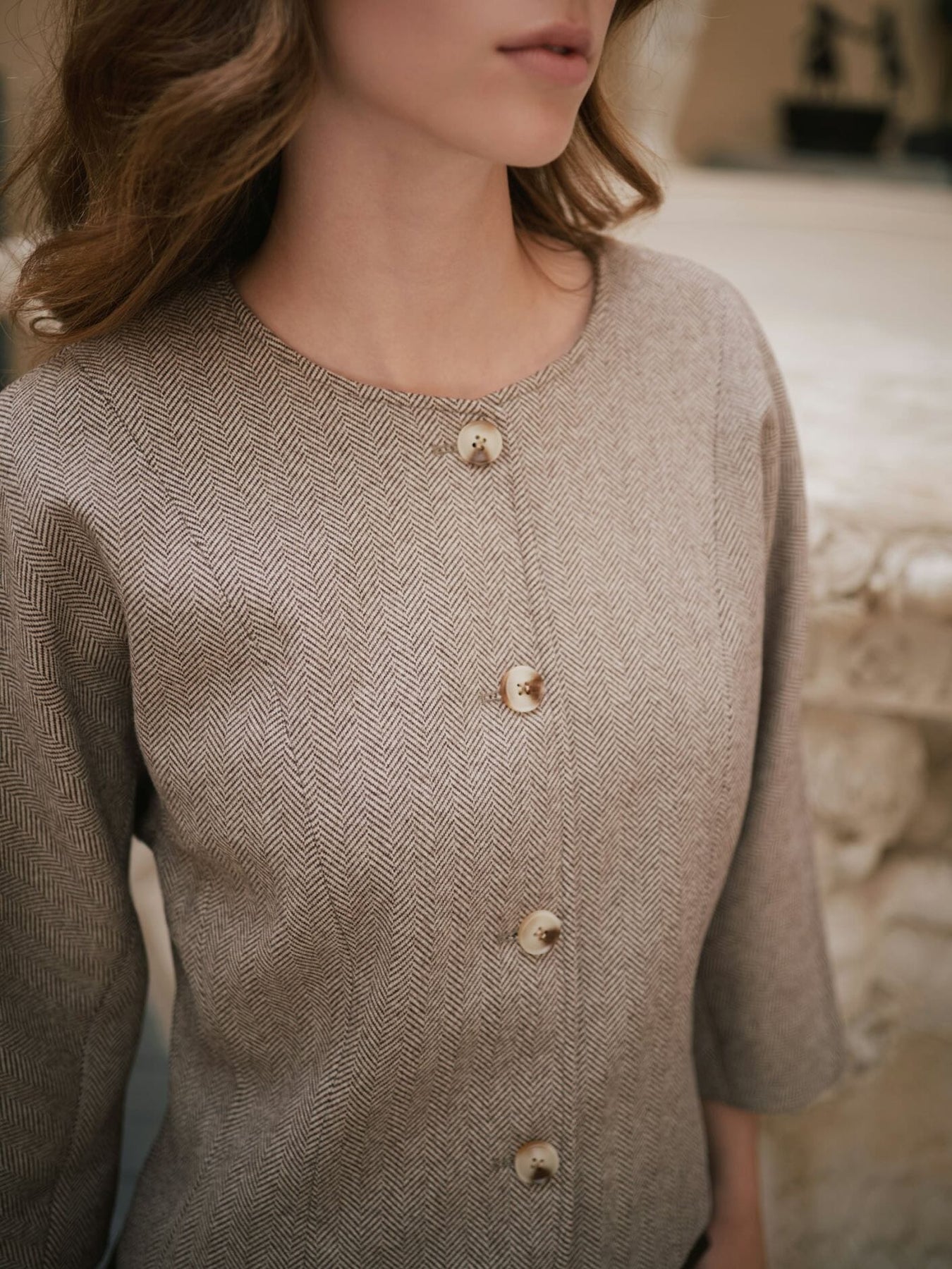 Neo Noir - Mesto Light Herringbone Jacket 167015 - 387 - White/Brown