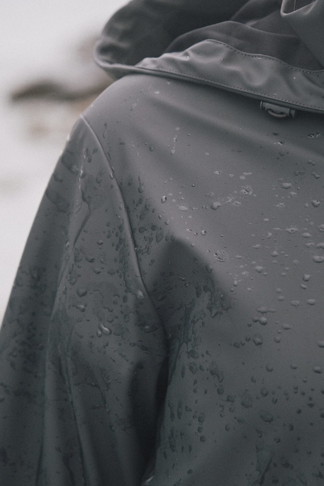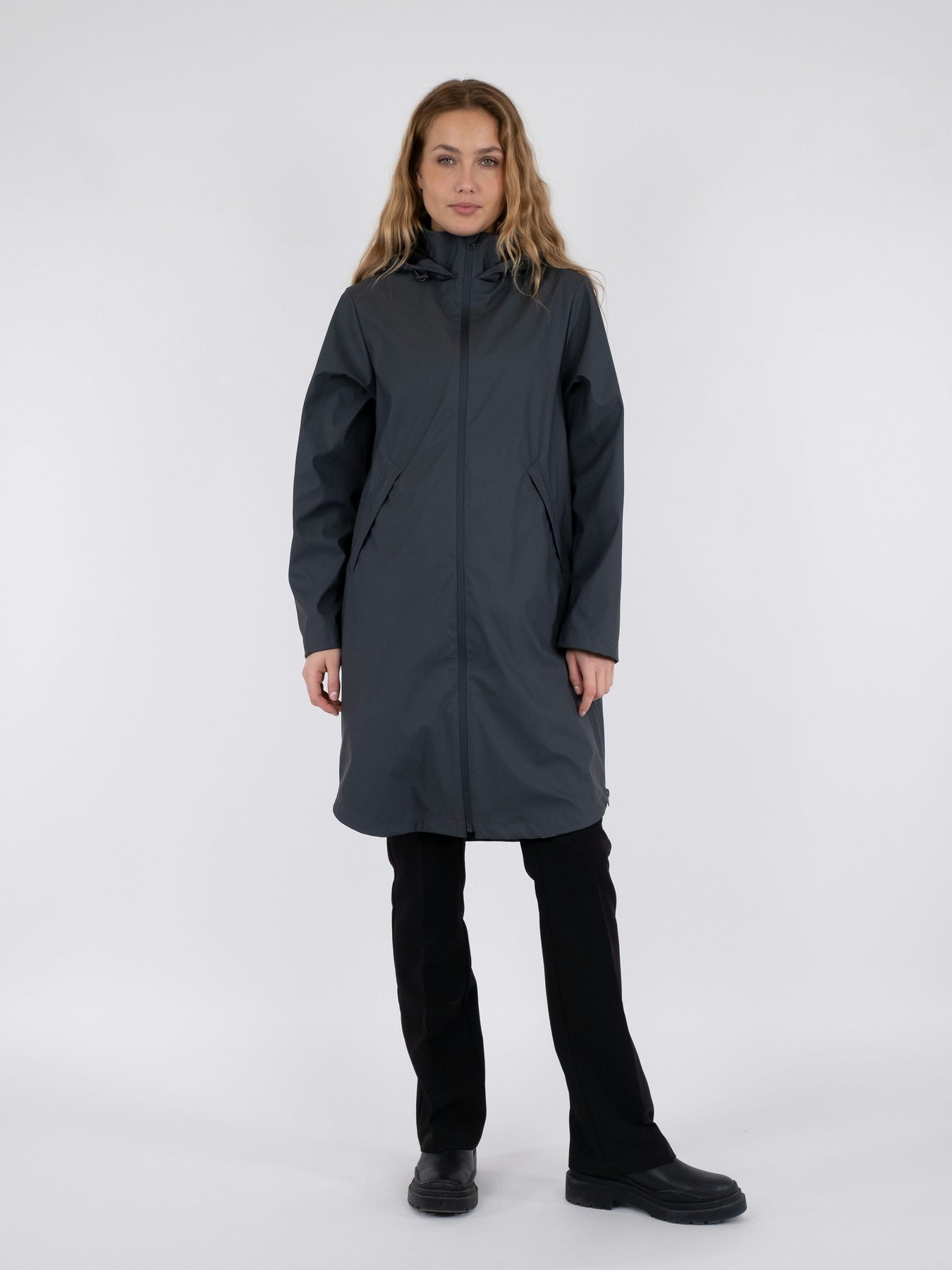 Gevoerde jas van Neo Noir in antraciet. Een praktische jas van waterdicht materiaal met een zachte, matte afwerking. De jas heeft een hoge kraag en een afneembare capuchon.