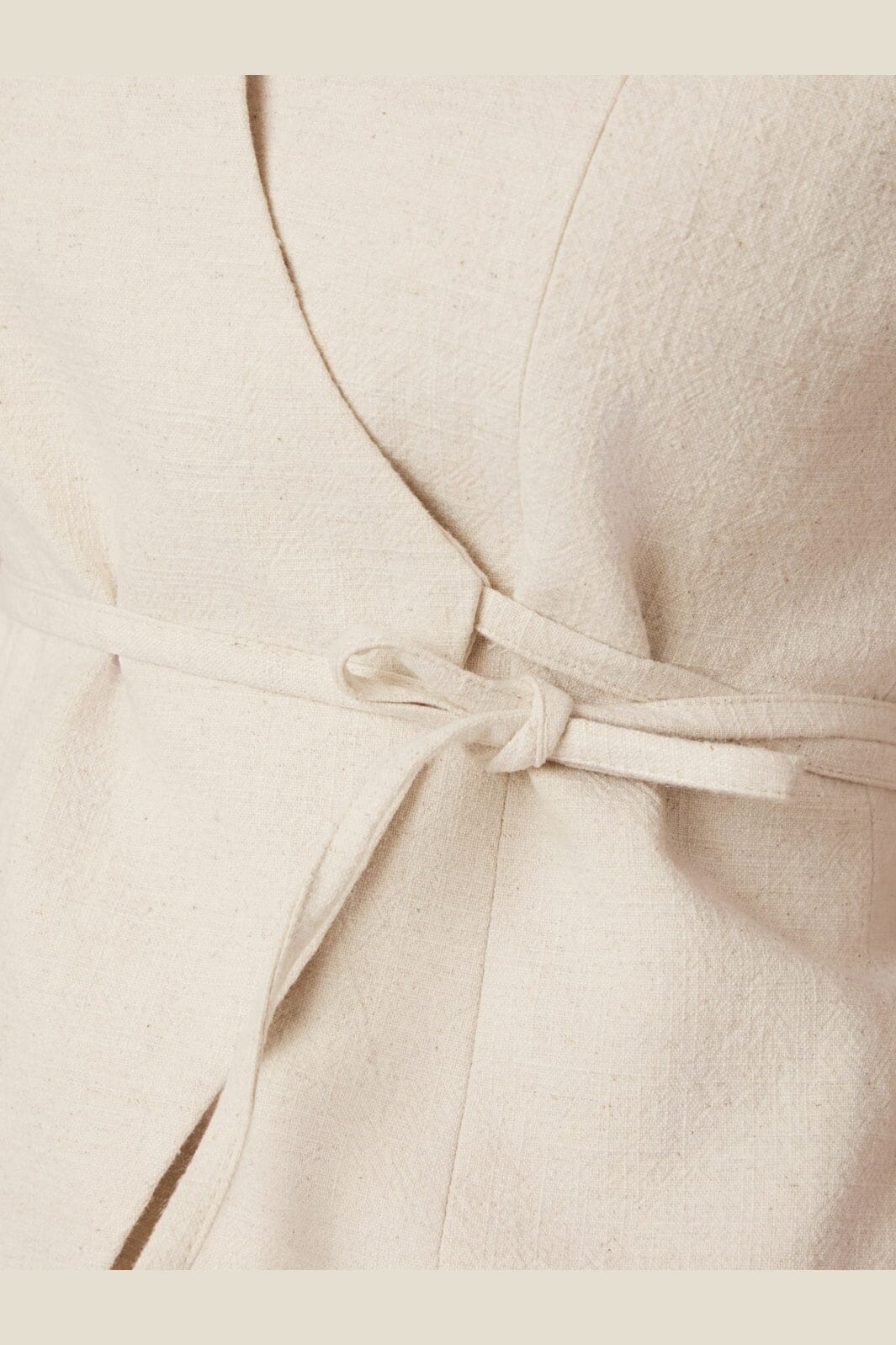 Gilet van Neo Noir, gemaakt van 80% ramie en 20% katoen in een natuurlijke kleurnuance. Het gilet heeft een aangesloten pasvorm met wikkel-effect.