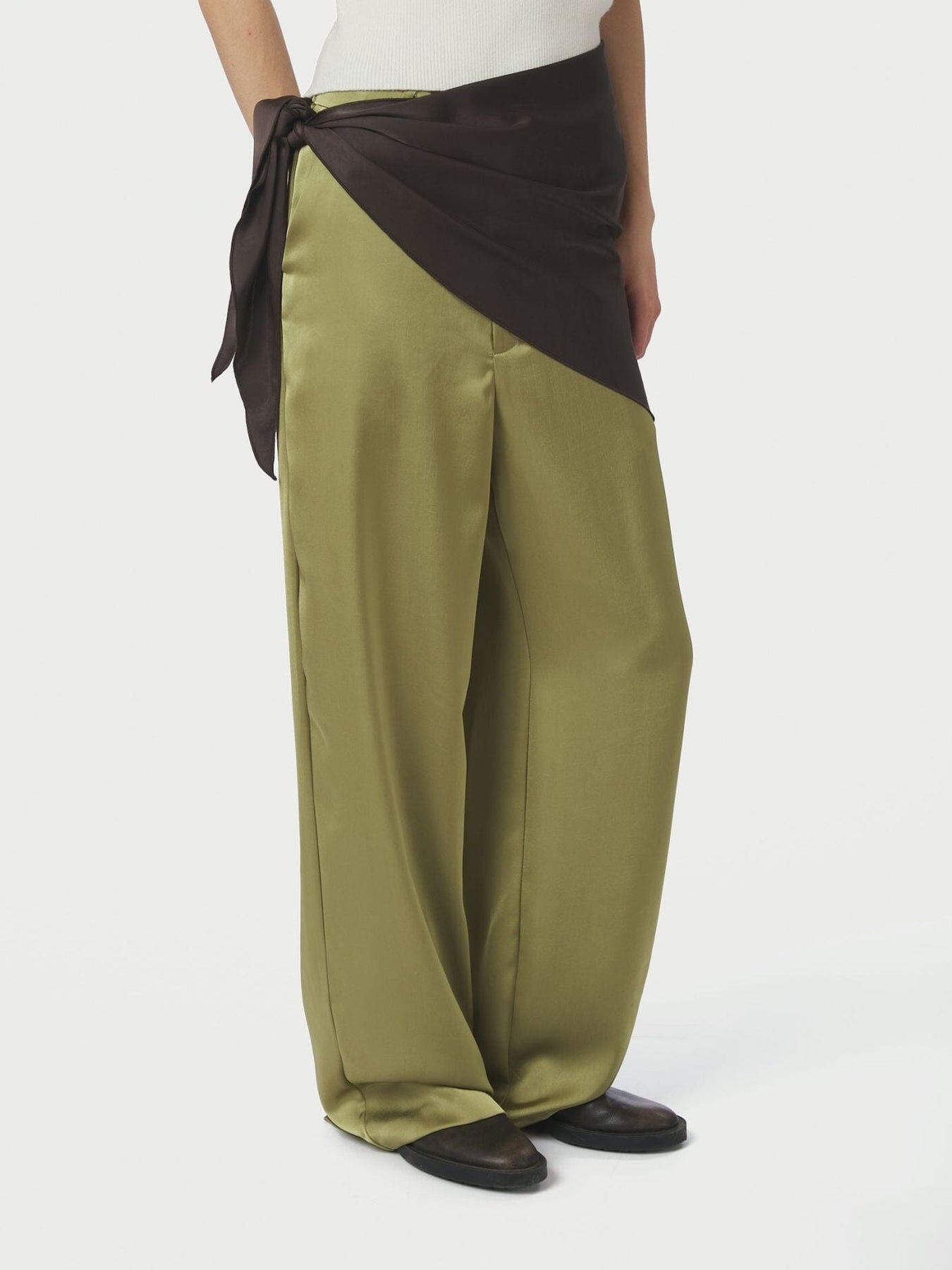Grote sjaal van Neo Noir, gemaakt van satijn in een donkerbruine kleur. De sjaal heeft een driehoekig design.