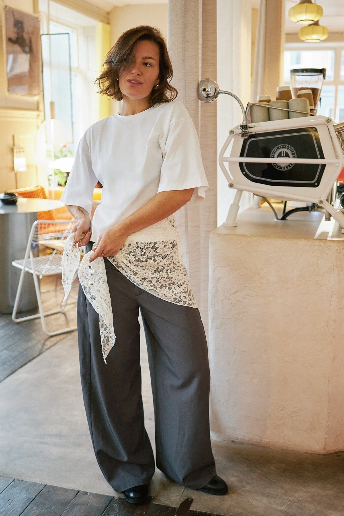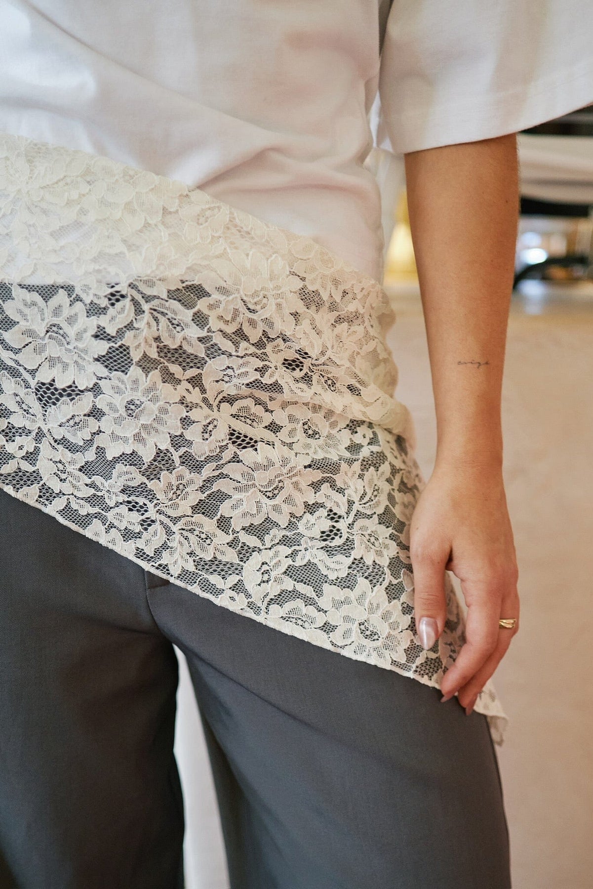 Kanten halsdoek van Neo Noir in crème. Gemaakt van kant met een bloemmotief dat op verschillende manieren kan worden gestrikt.
