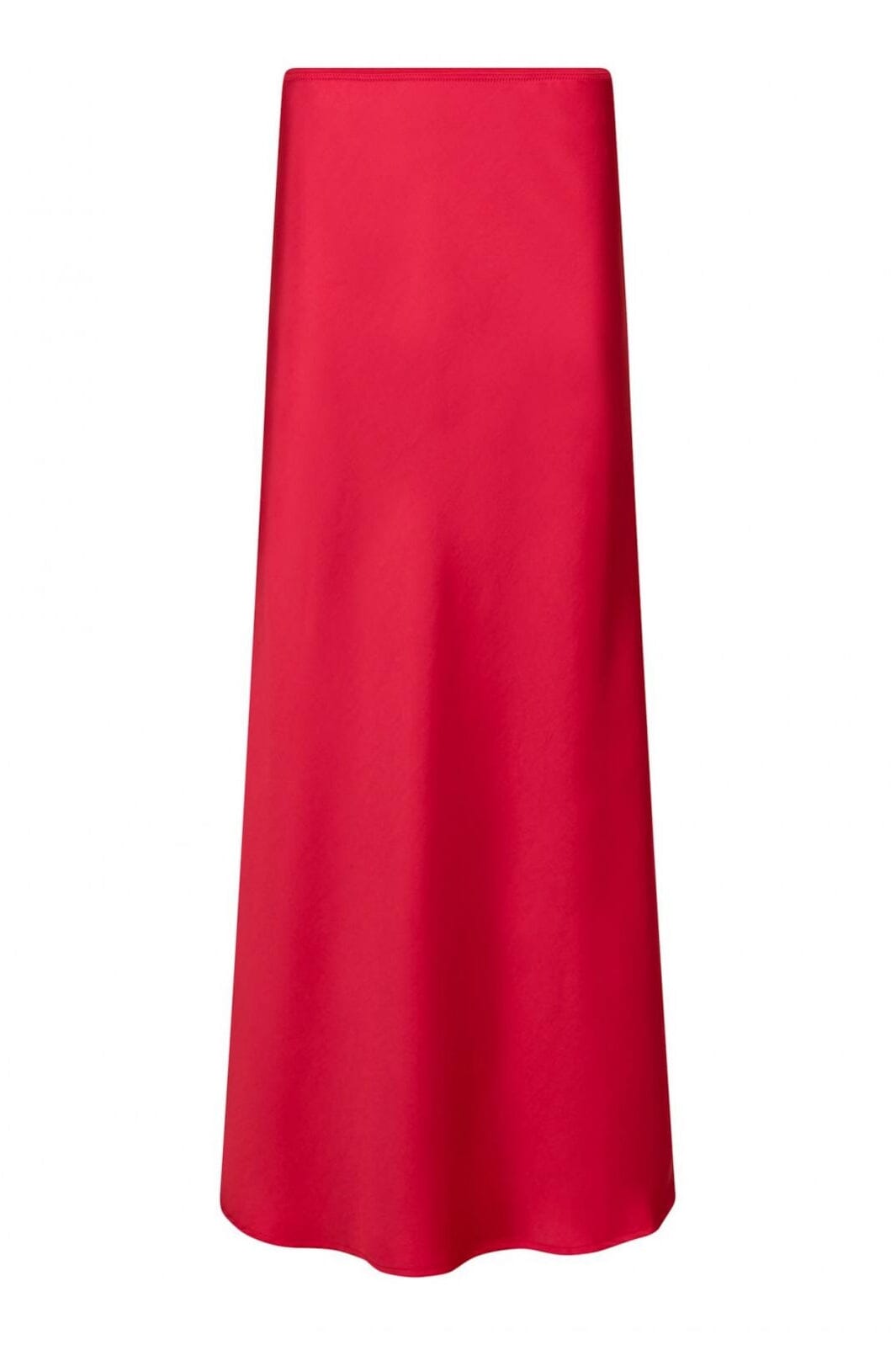 Rode rok van Neo Noir in zachte satijn met schuine snit. Het lange model heeft een binnenste elastiek in de taille en een slim fit-pasvorm die de lichaamslijnen volgt.