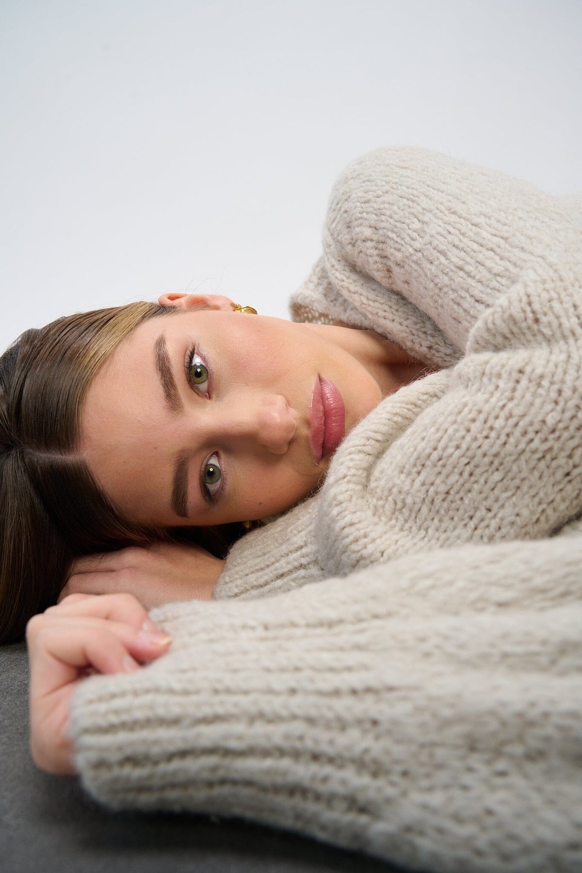 Sandkleurige cardigan van Noella met chunky breiwerk en V-hals. Het dikke breiwerk biedt zowel warmte als karakter, terwijl de losse pasvorm een ontspannen silhouet creëert.