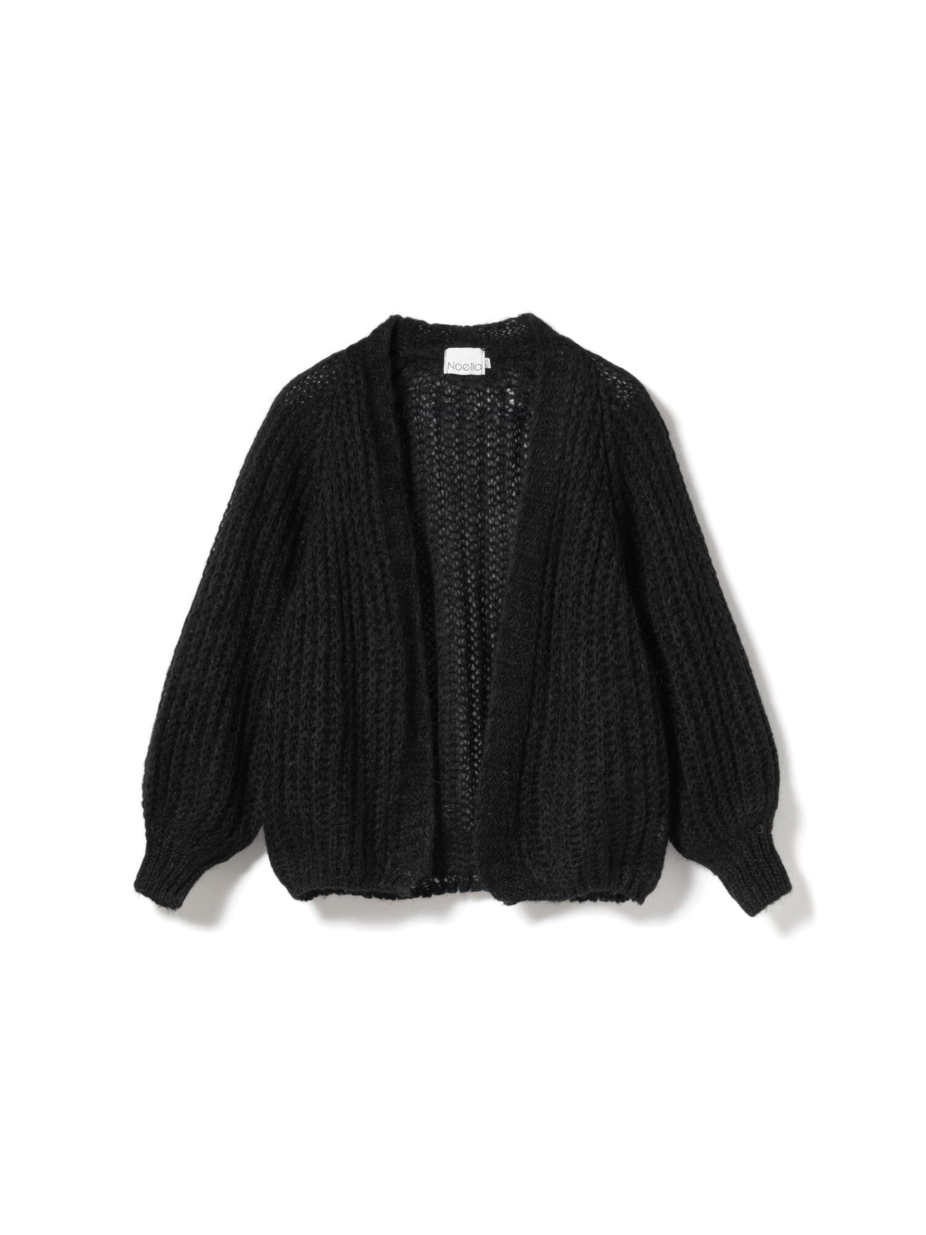 Zwarte cardigan van Noella met gebreide textuur en losse pasvorm. De licht gepofte mouwen en de open voorkant geven de cardigan een eenvoudige en ontspannen uitstraling.
