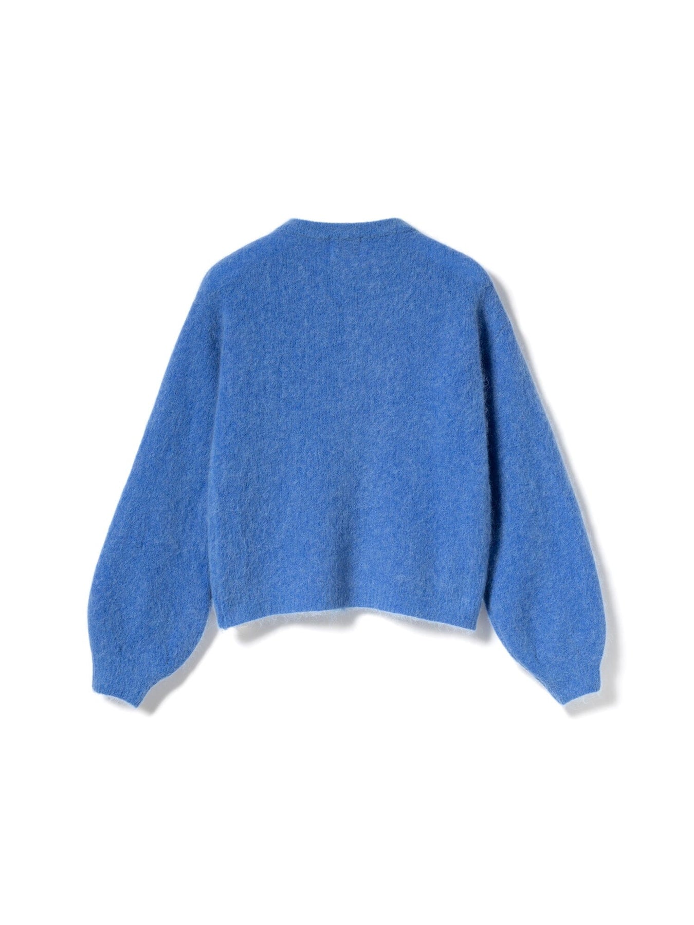 Gebreide cardigan van Noella in een lichtblauwe tint. Hij heeft een ronde halslijn en een knoopsluiting aan de voorkant met lichte knopen. De ballonmouwen en de korte lengte geven de cardigan een bijzondere uitstraling.