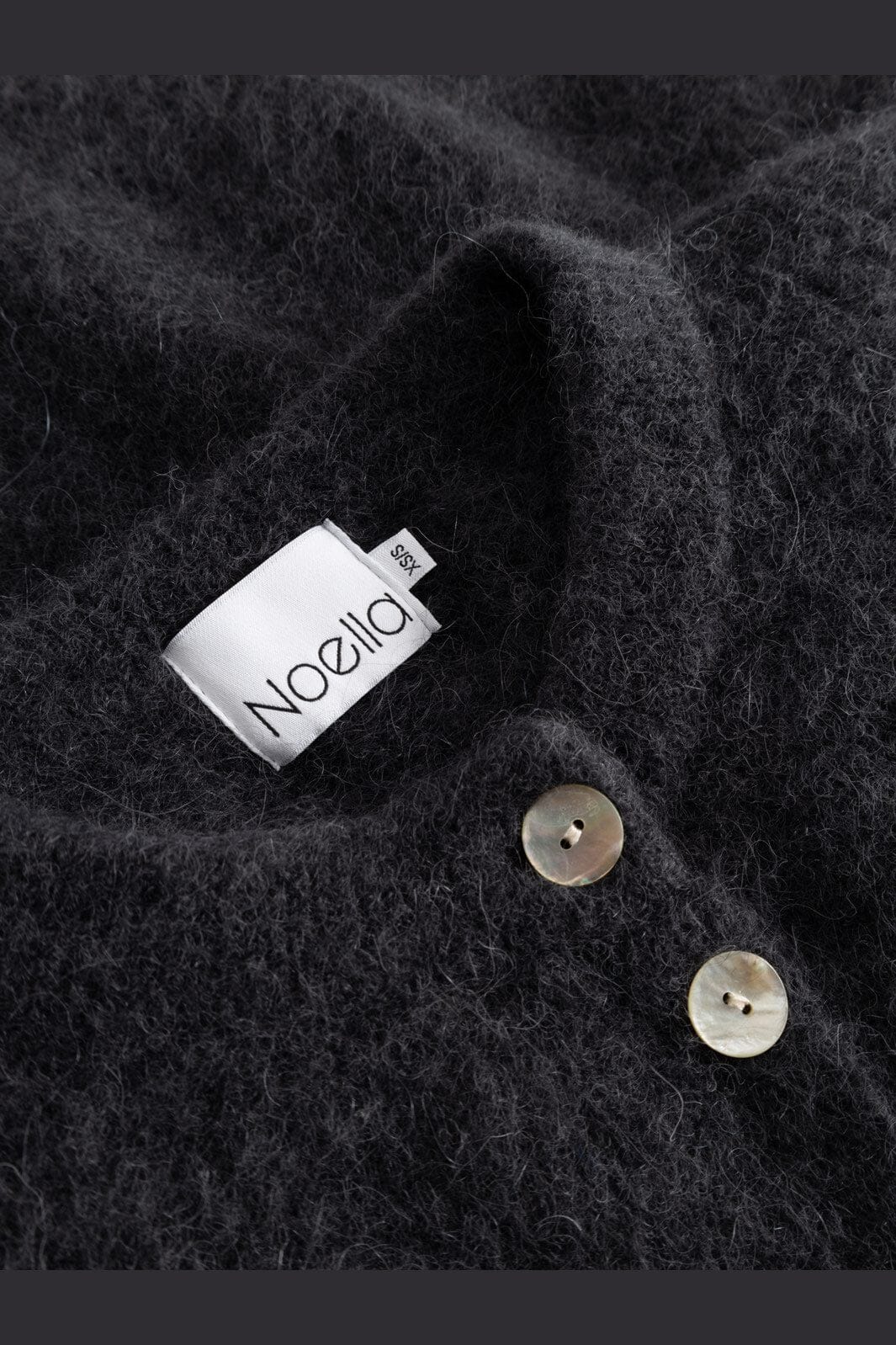 Donkergrijze gebreide cardigan van Noella met pofmouwen en parelknoopjes. De losse pasvorm en de zachte materiaalmix zorgen voor een comfortabele cardigan voor de dagelijkse wear.