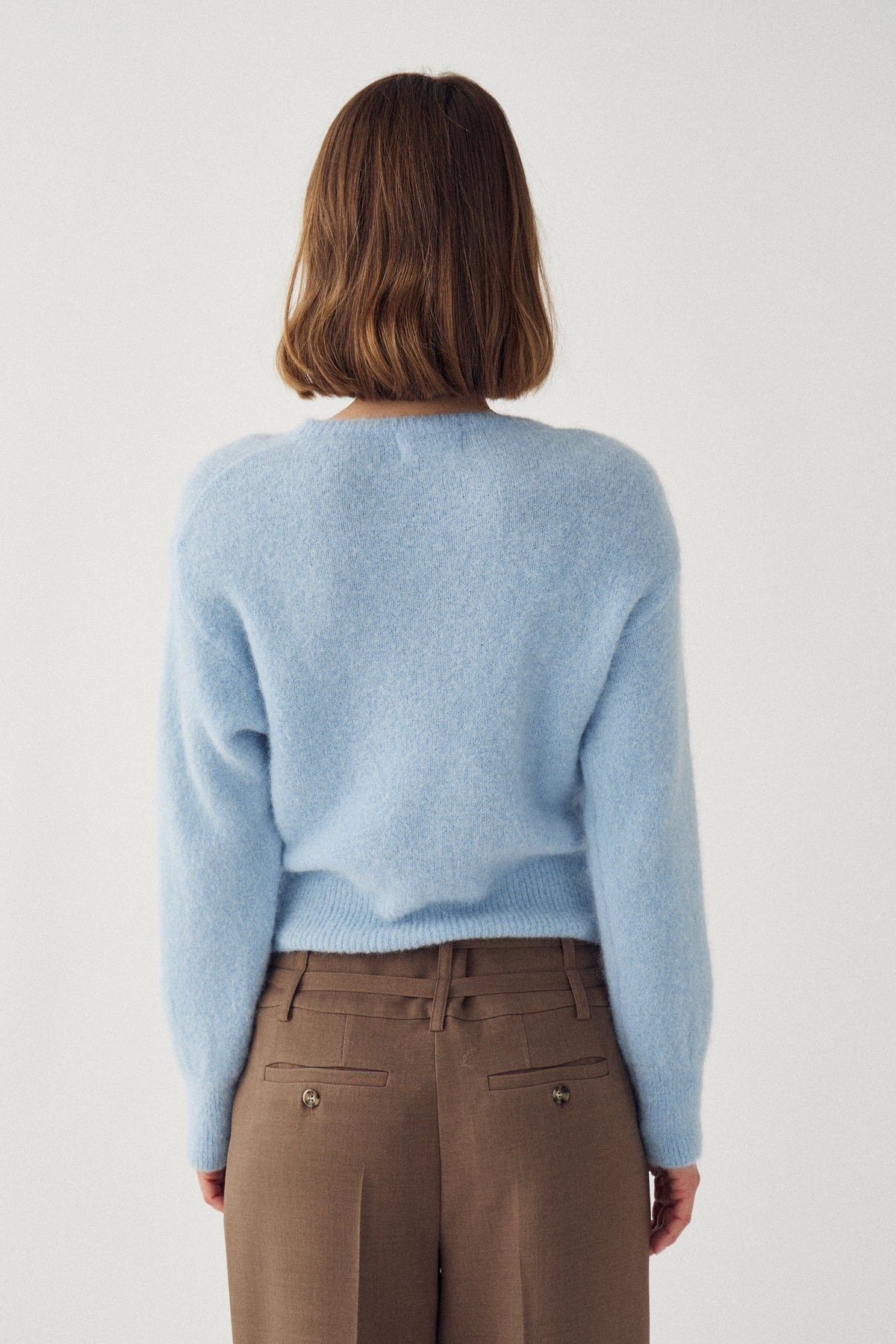 Gebreid vest van Noella in een lichtblauwe tint. Het vest heeft een zachte materiaalmix van alpaca en wol.