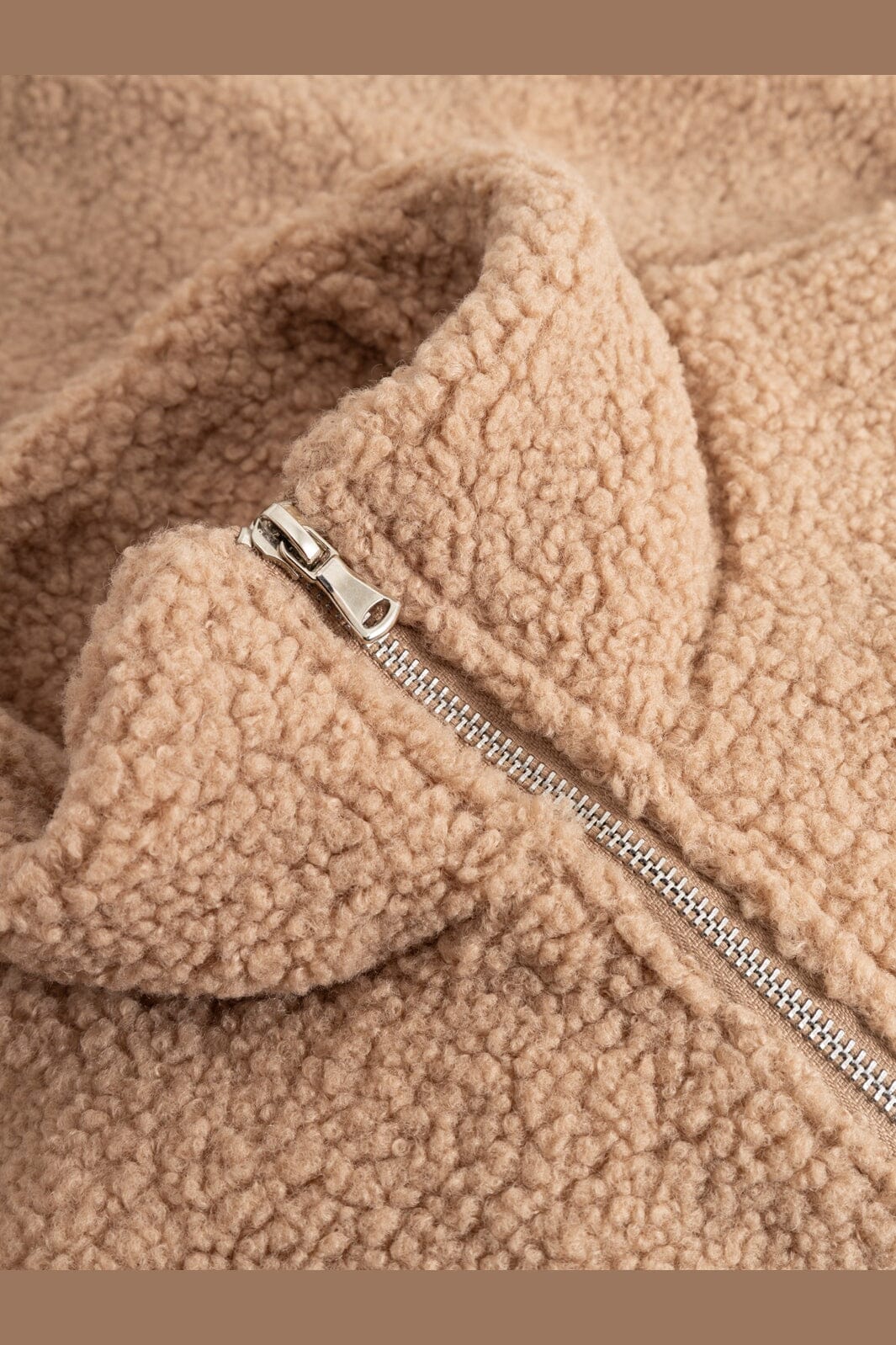 Kort jack van Noella van zachte teddystof in een lichte crèmekleur. Het jack is geschikt voor zowel ontspannen gebruik thuis als voor een casual dagelijkse stijl.