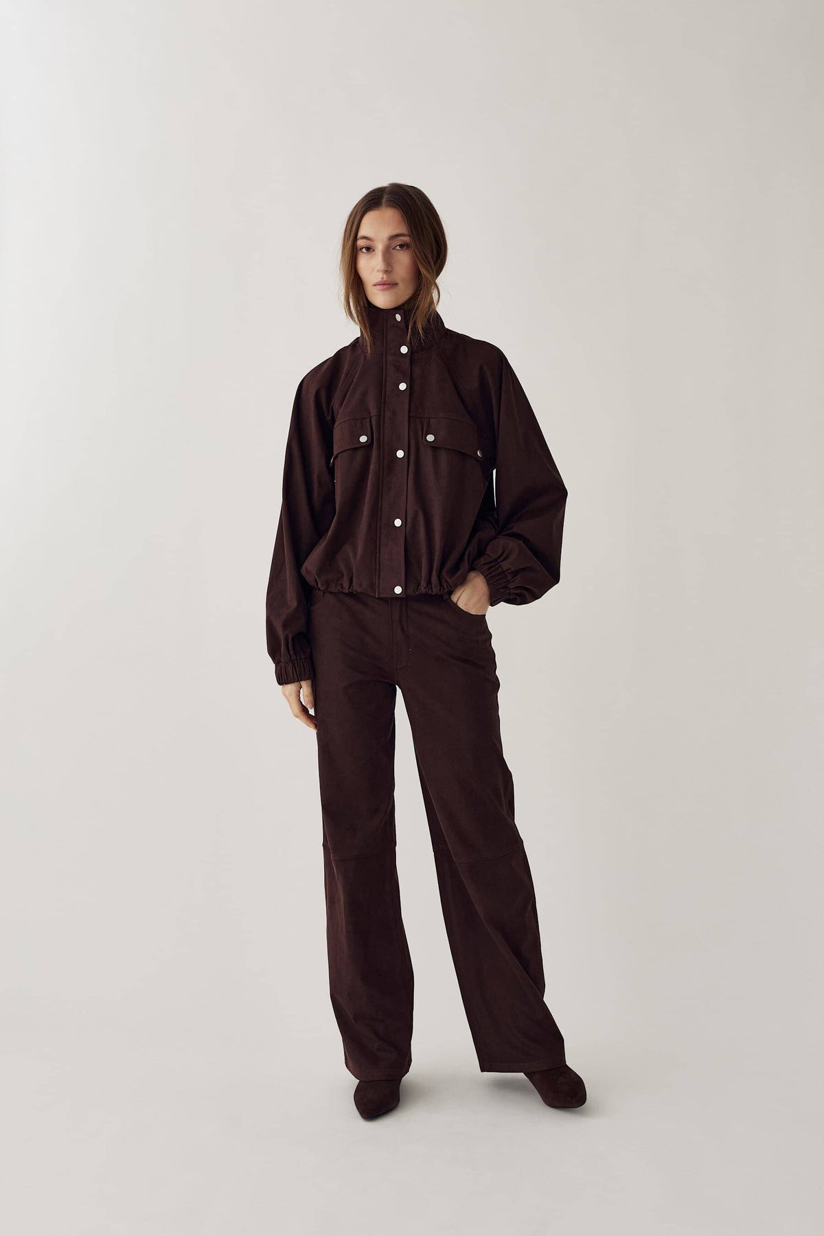 Jas van Noella in donkerbruine kleur. Gemaakt van 90% polyester en 10% elastaan met decoratieve stiksels en een losse pasvorm.