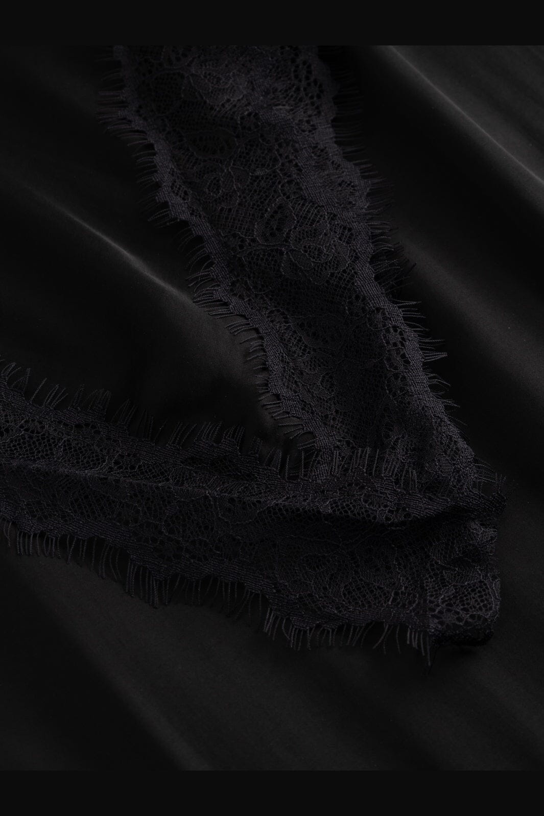 Zwarte jurk van Noella, gemaakt van 100% viscose. De jurk heeft dunne, verstelbare bandjes en een asymmetrische zoom met kant.