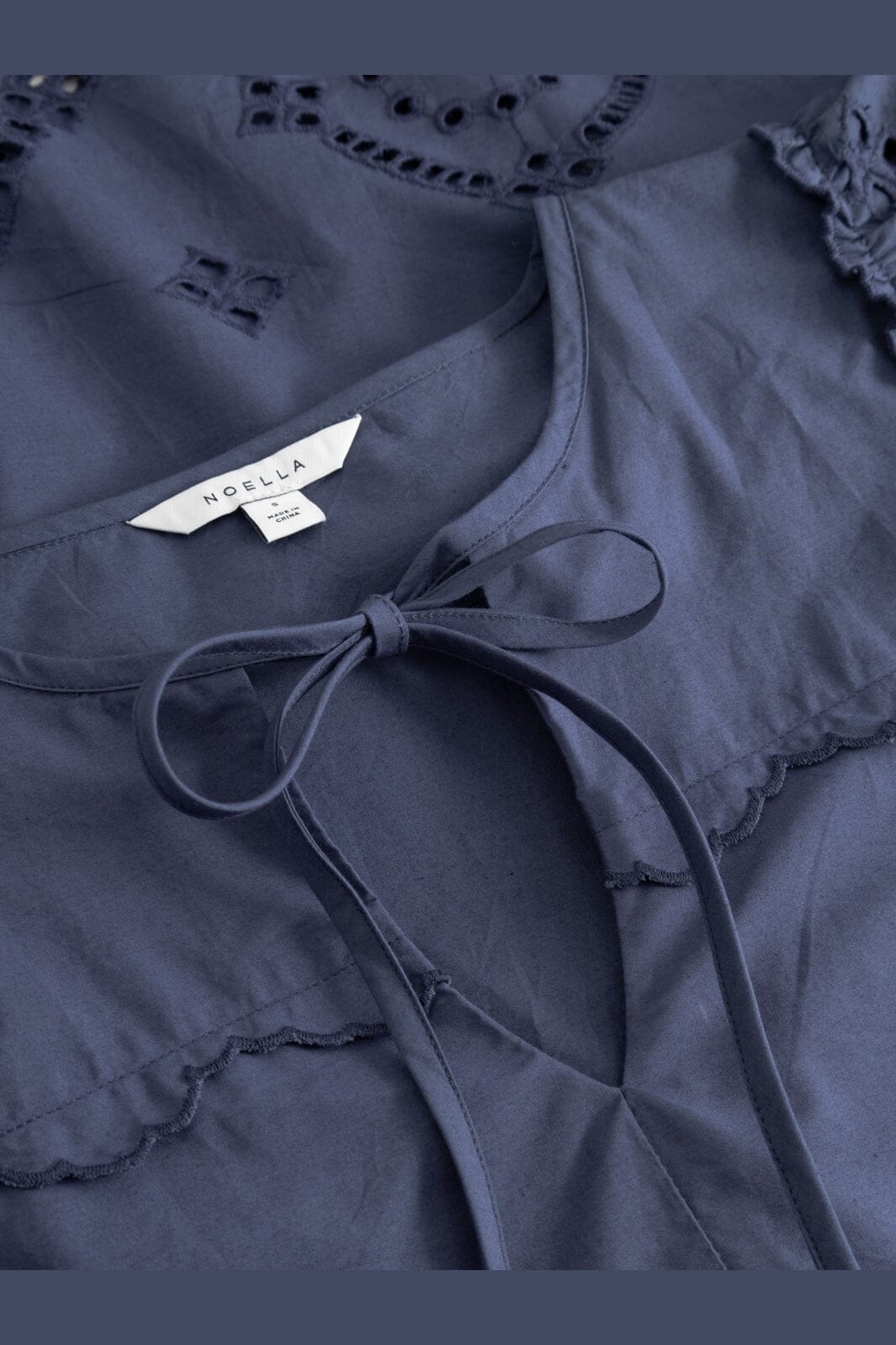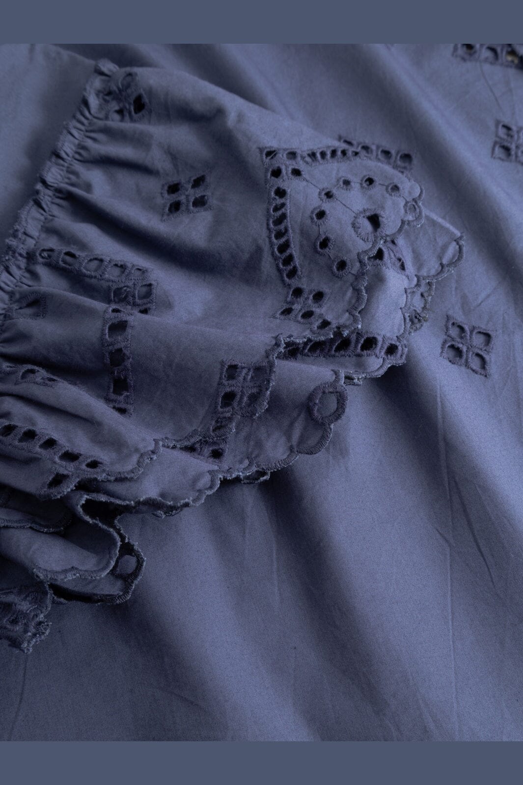 Jurk van Noella in stoffig blauw. Gemaakt van 100% katoen met geborduurde details, striklint en kant.