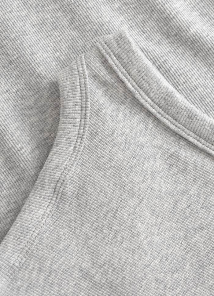 Mouwloze top van Noella in gemêleerd grijs. Gemaakt van dik geribd materiaal met brede ribboorden bij de halslijn en armsgaten.