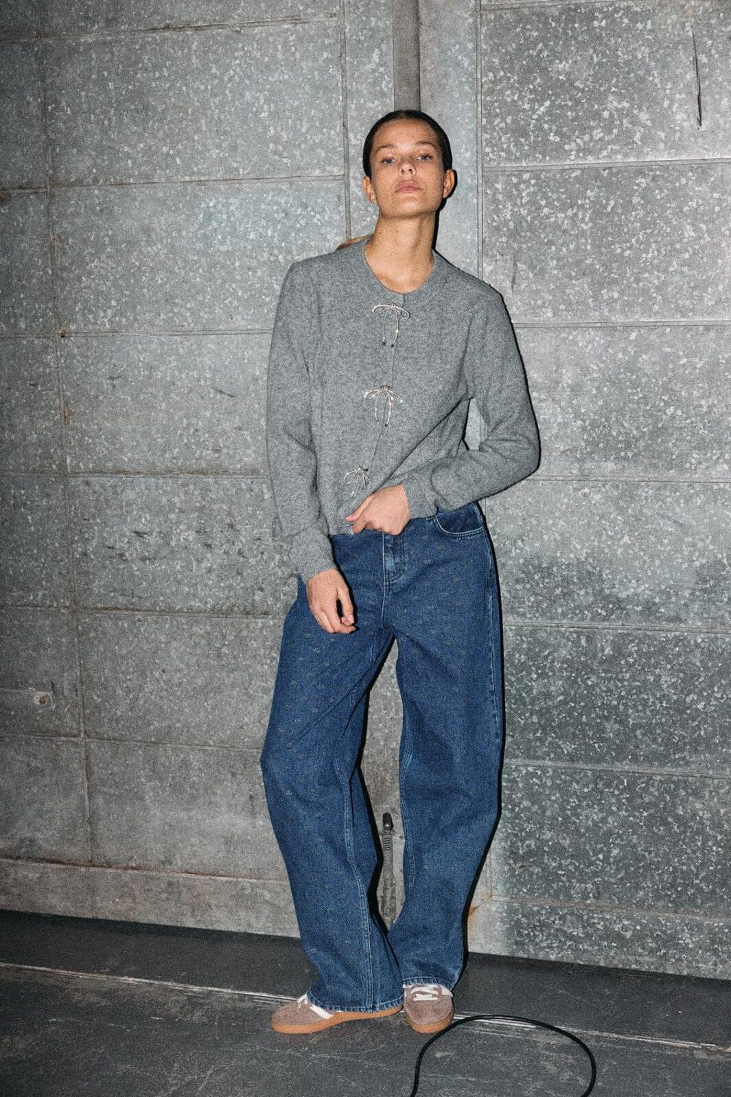 Noisy May Nmbrayana L/S Bow Trim Knit Cardigan Kleur: 4903272 Ultimate Grey Sequin Bow