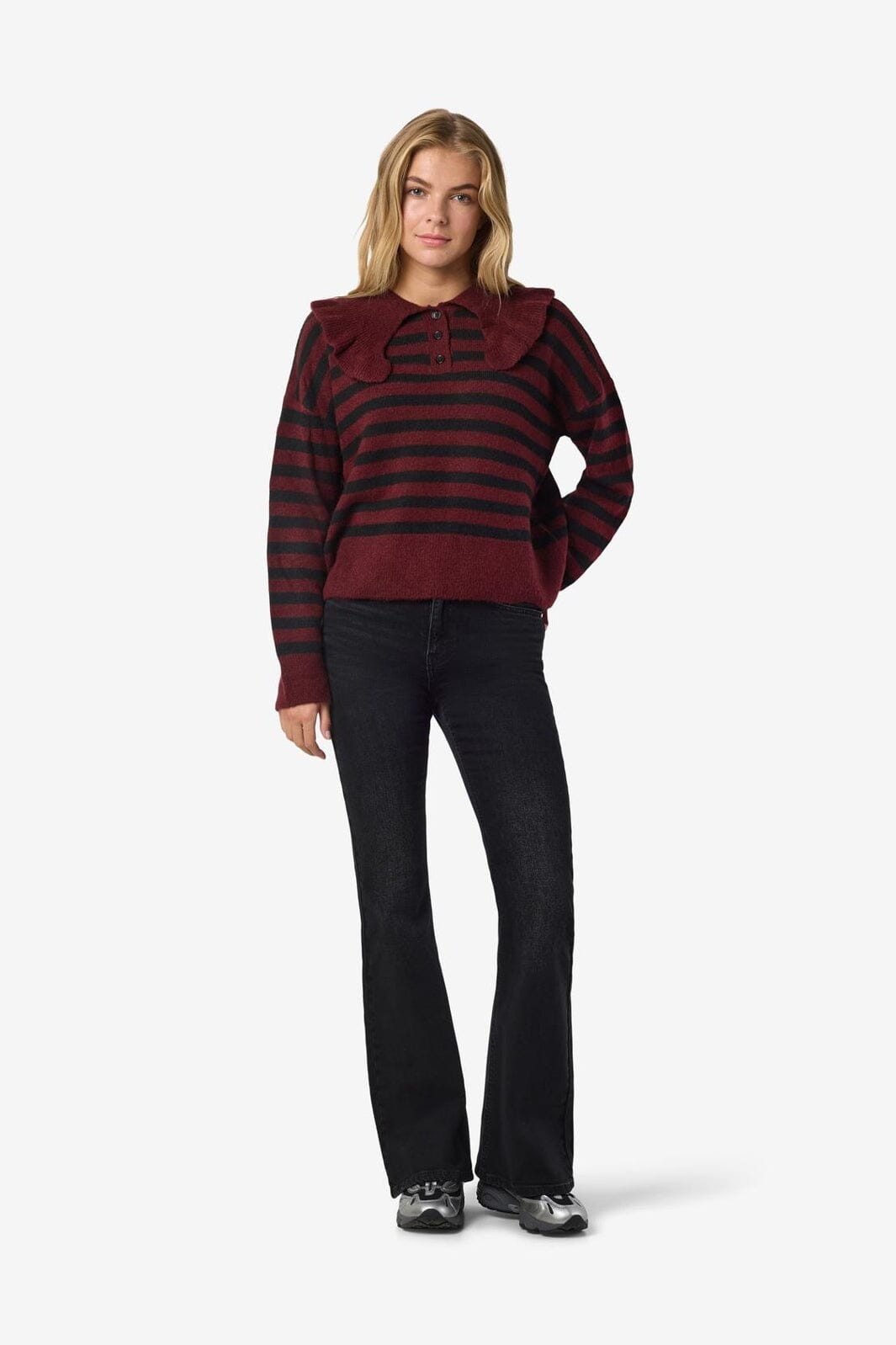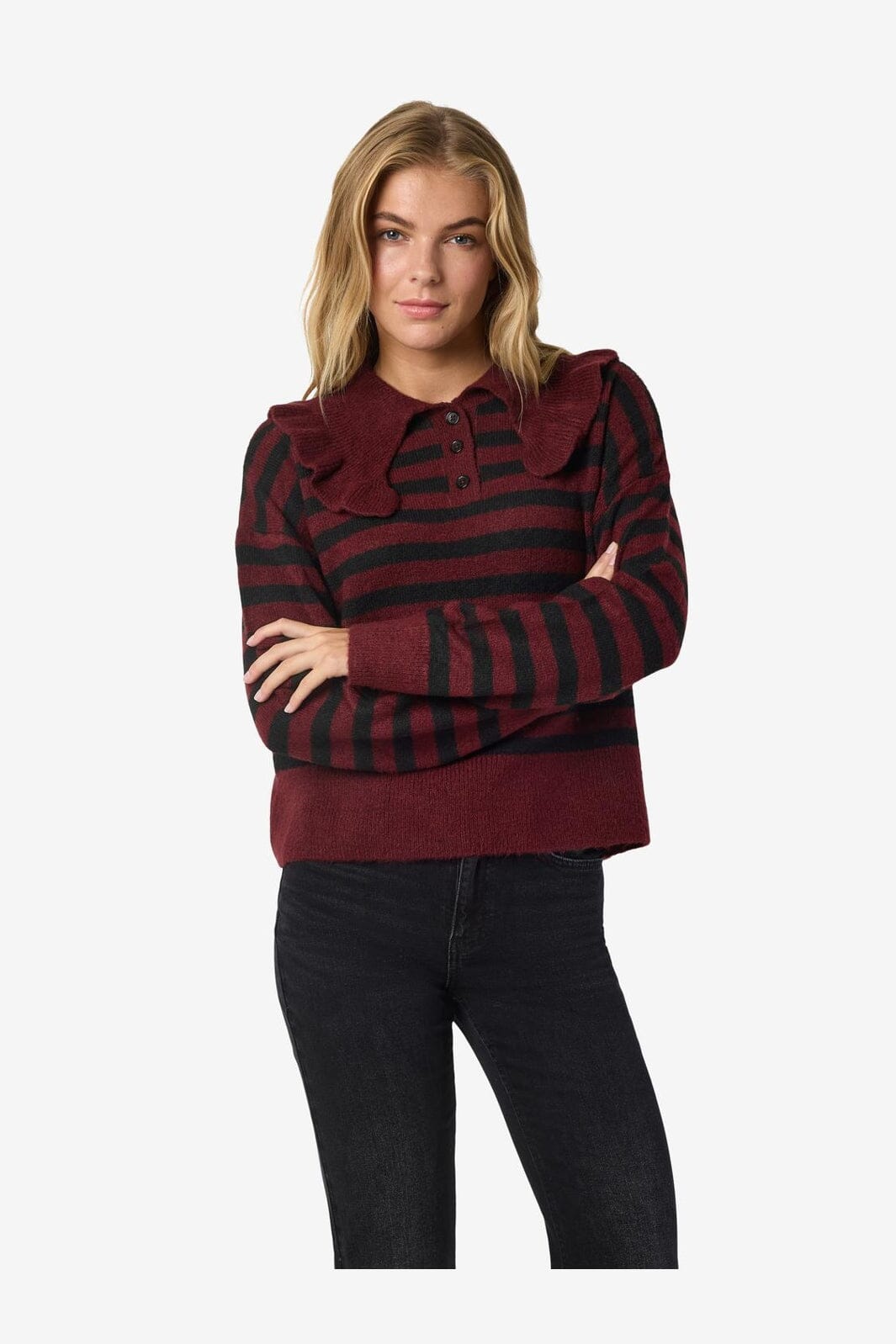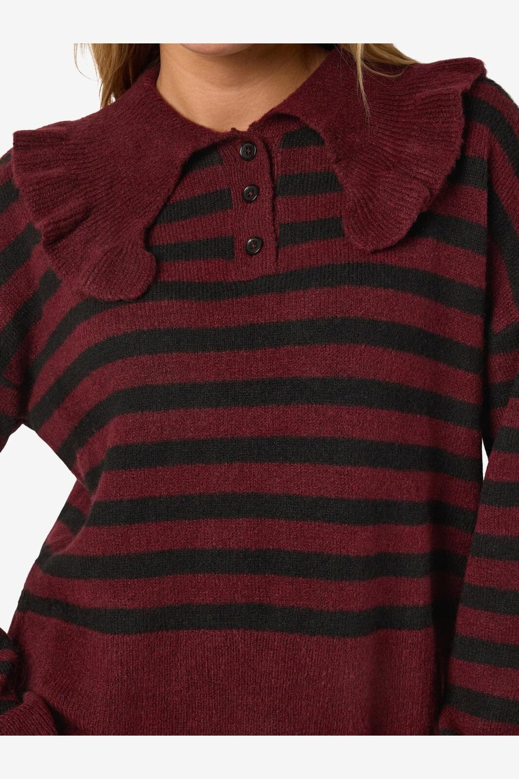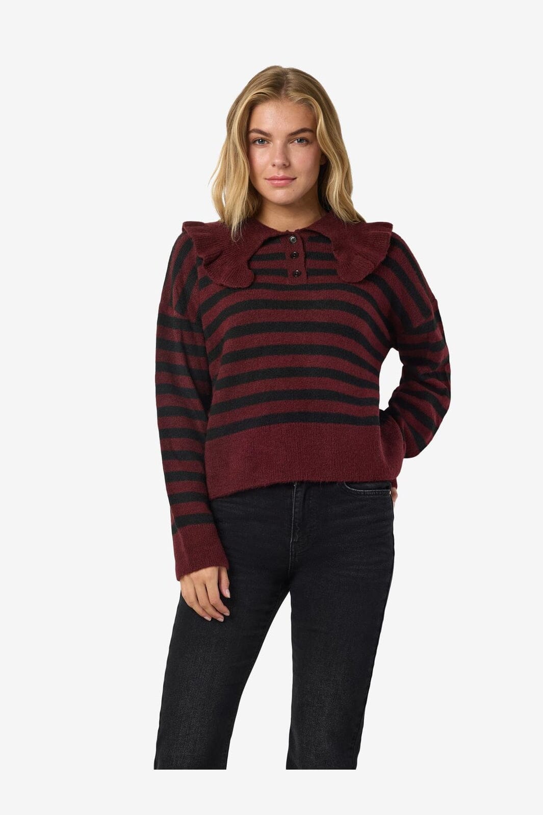 Noisy May Nmbrooke L/S Frill Collar Knit Kleur: 4924582 Windsor Wine Black