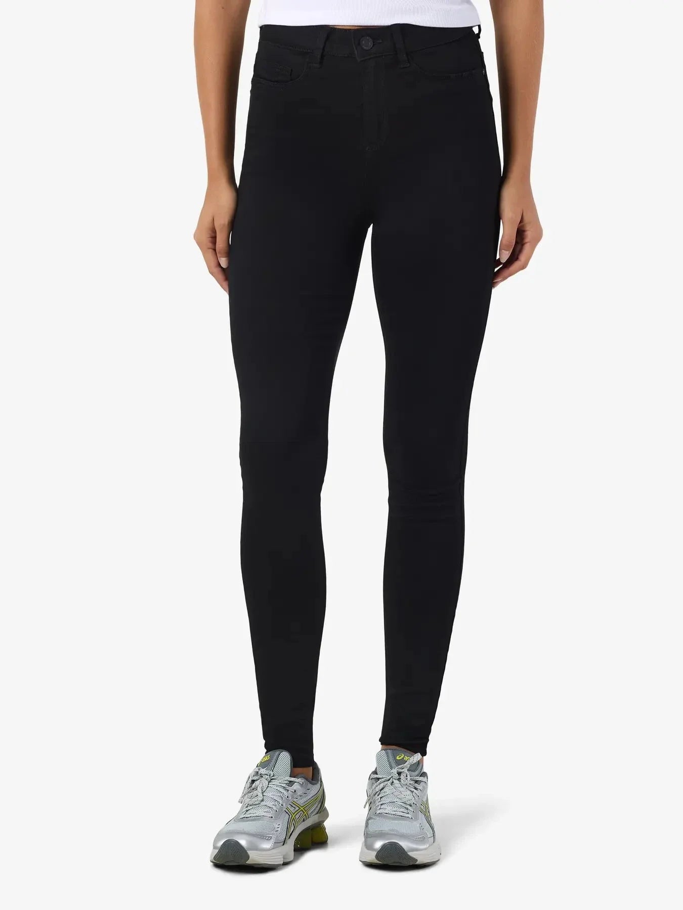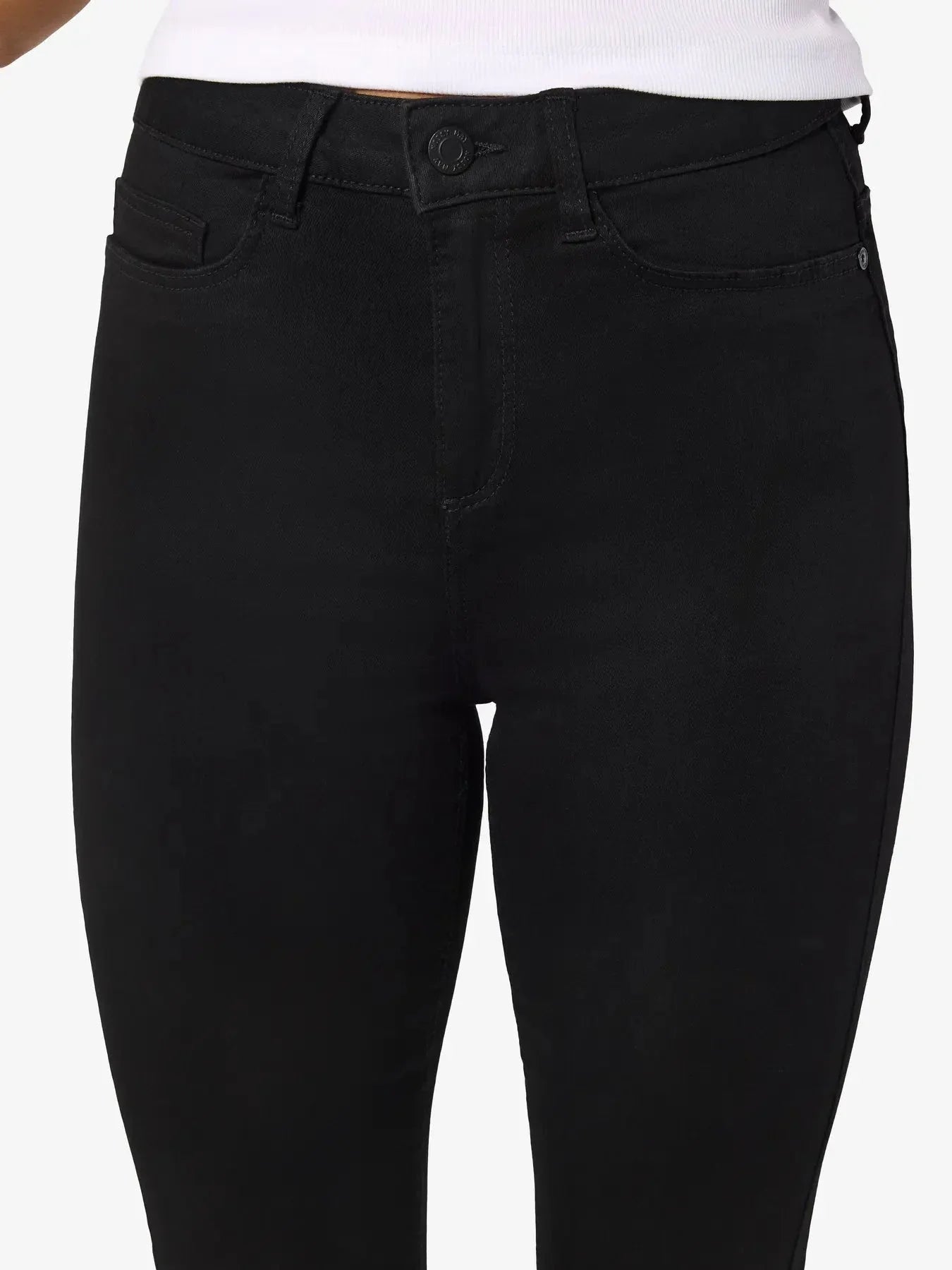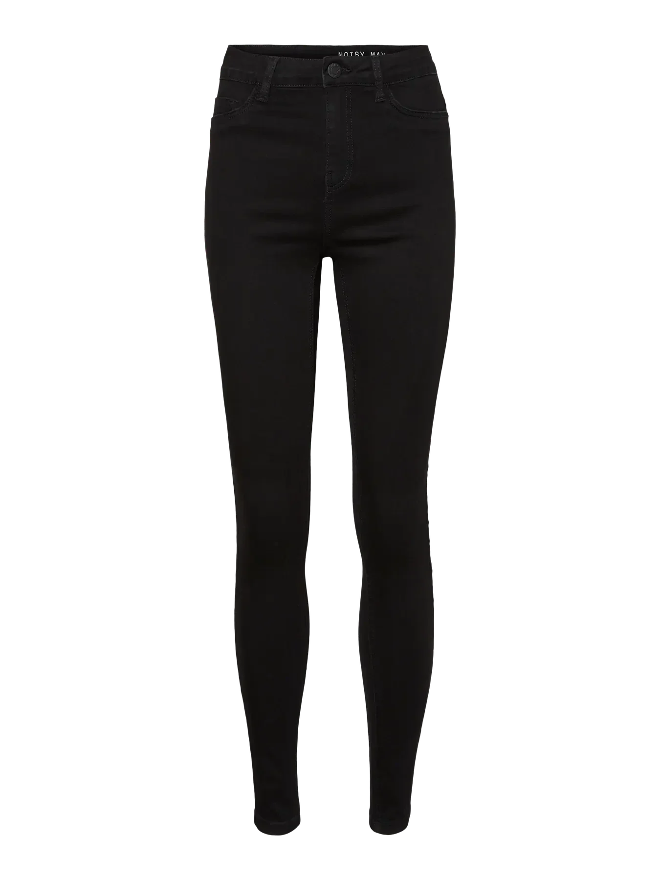 Zwarte skinny jeans van Noisy May met een hoge taille en enkel-lengte. De jeans hebben een ritssluiting en knoop als sluiting.