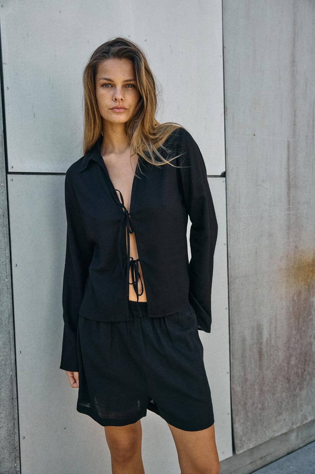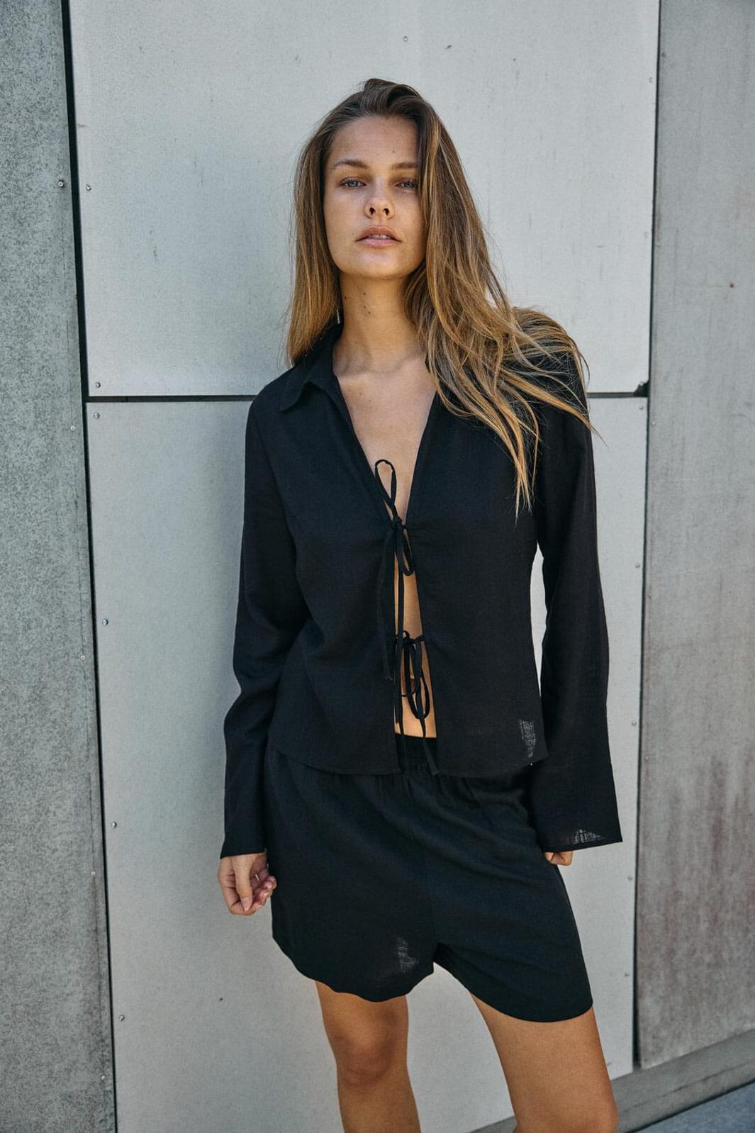 Zwarte shorts van Noisy May met hoge taille en losse pasvorm. De shorts zijn gemaakt van een mix van viscose en linnen, wat zorgt voor een zachte en luchtige uitstraling.