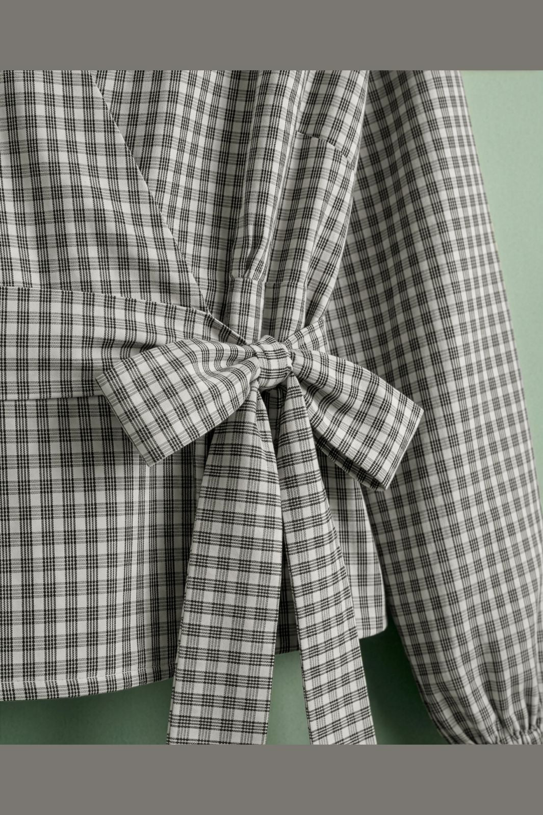 Wikkelblouse van Object in een geruit patroon met zwart, crème en wit. Gemaakt van 100% katoen met lange mouwen en een V-hals.