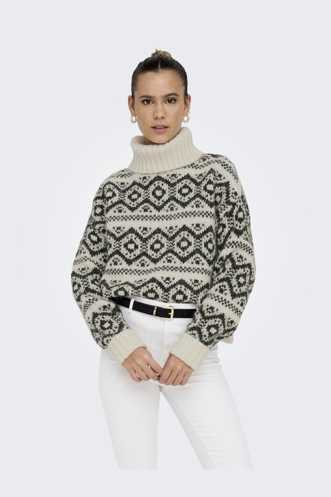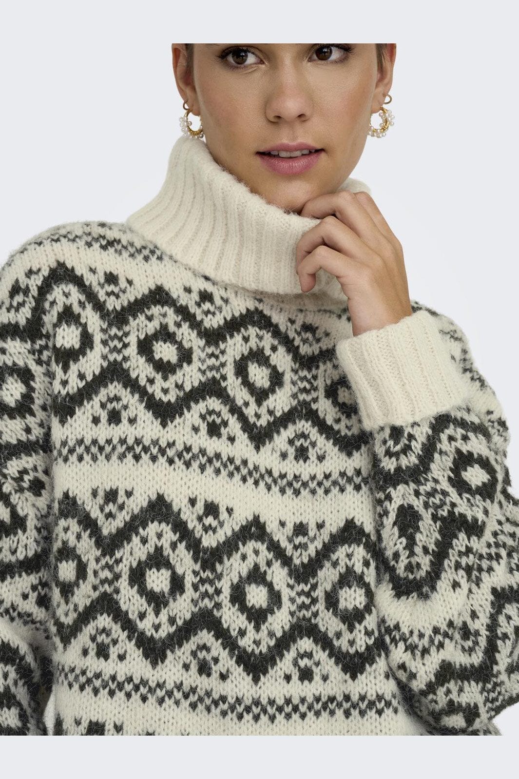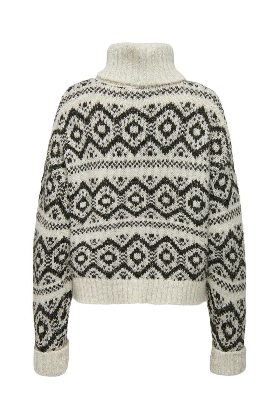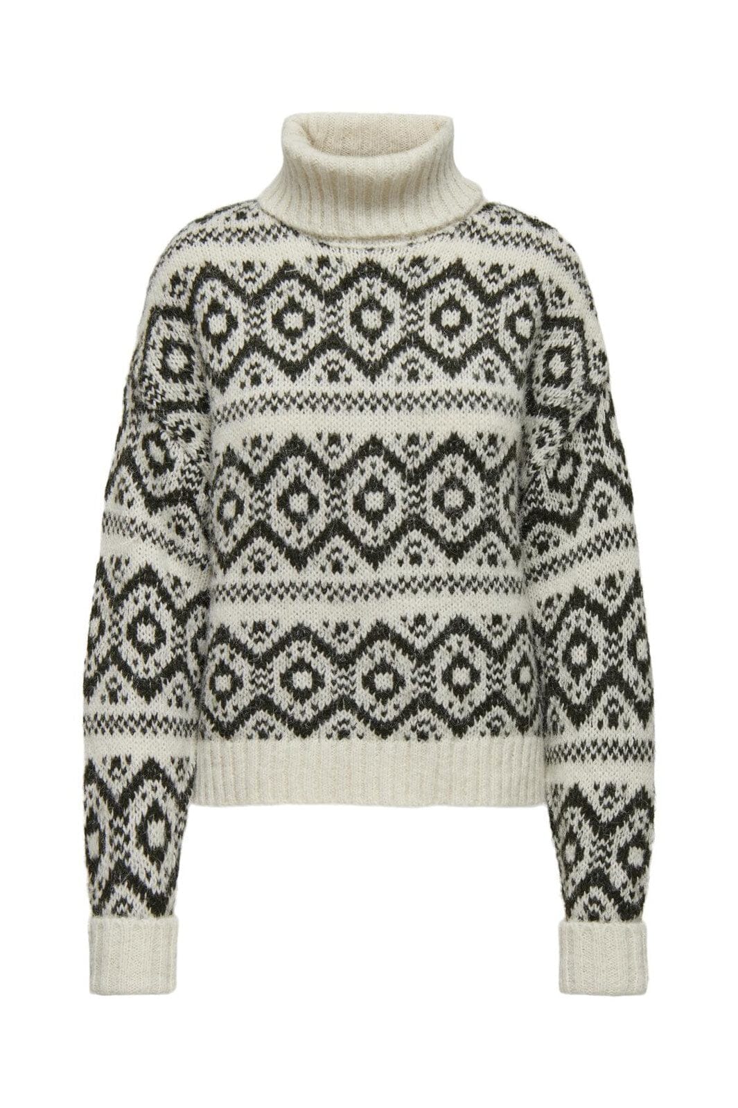 Gebreide trui van Only met geometrisch patroon in berk- en harsnuances. De hoge col en de losse pasvorm zorgen voor een goede combinatie van stijl en comfort.