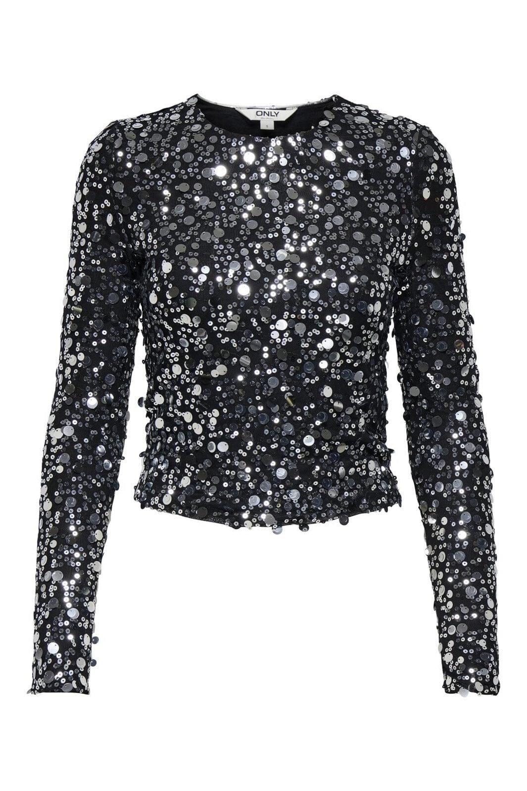 Only Onlcatina Ls Sequins Top Kleur: 4866241 Silver