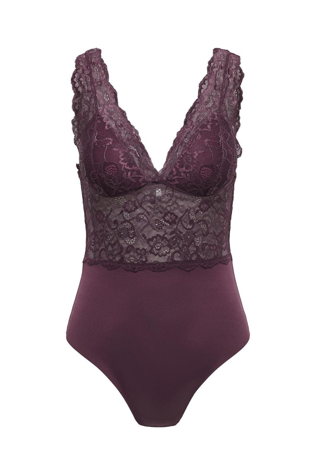 Only Onlchloe Glitter Lace Bodystocking Acc Kleur: 4868948 Winetasting Silver-Lurex