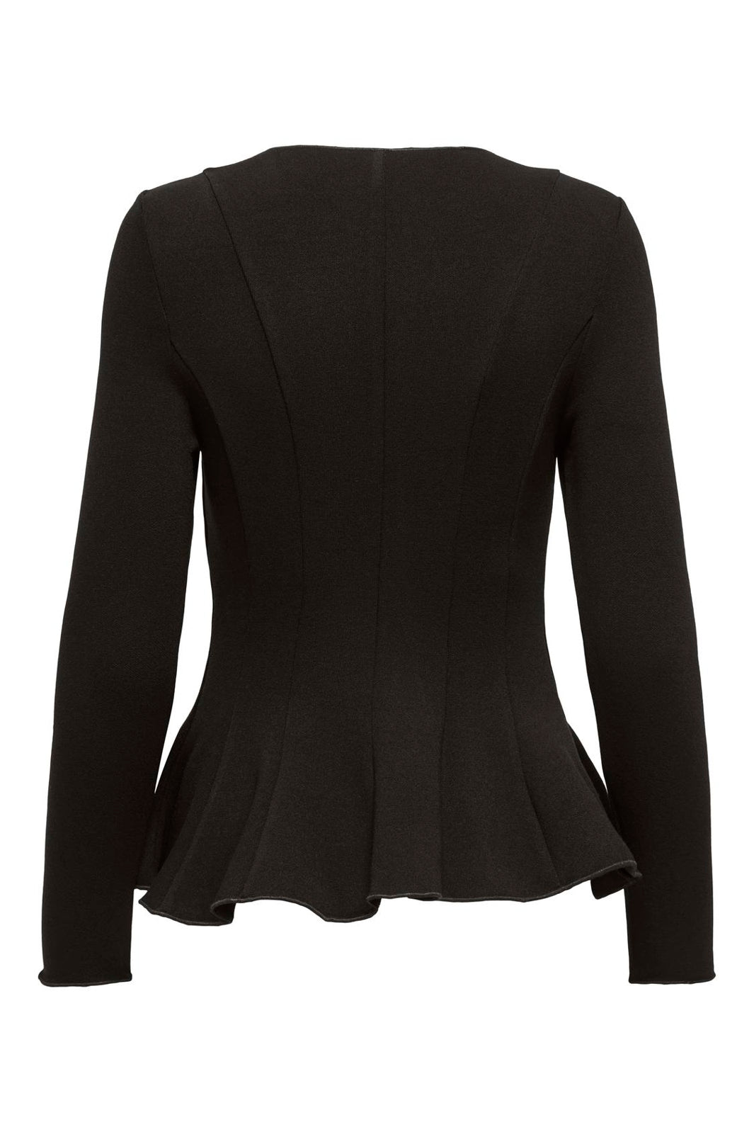 Donkerbruin peplumtop van Only met ronde hals en lange mouwen. De top heeft een peplumrand bij de taille en decoratieve stiksels die een mooie detail aan het eenvoudige ontwerp geven.