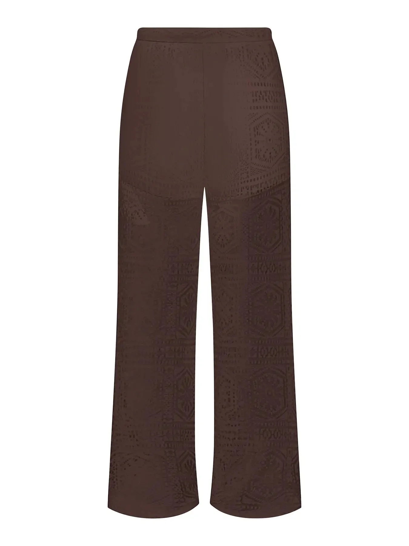 Wijde broek van Only in een bruine kleur met een kanten patroon over het hele oppervlak. De broek heeft een losse pasvorm en een elastische taille.