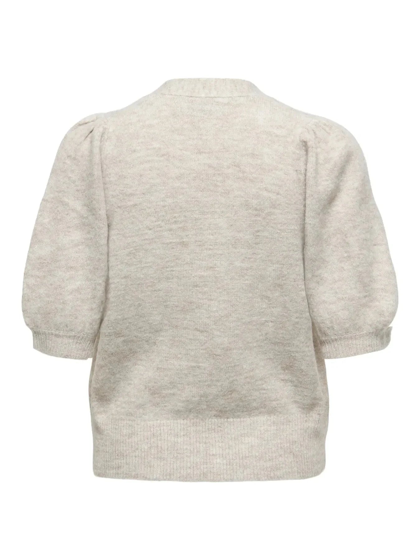 Cardigan van Only in een licht beige gemêleerde kleur. Het vest heeft korte mouwen met een licht gepofte vorm en een knoopsluiting aan de voorkant.