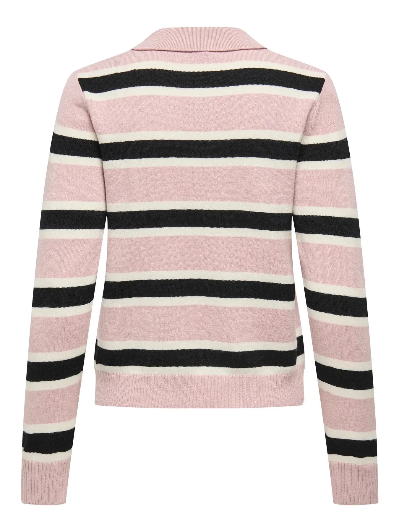 Only Onllondon Ls Stripe Polo Cc Knt Kleur: 4947496 Burnished Lilac Babys Breath/Black/Dtm Button