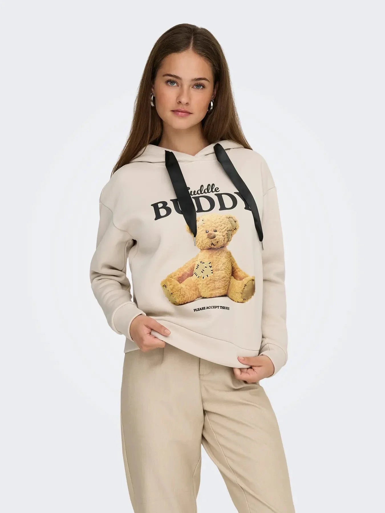 Only Onlricky L/S Hood Box Swt Kleur: 4924854 Pumice Stone Buddy + Black Sateen Strings