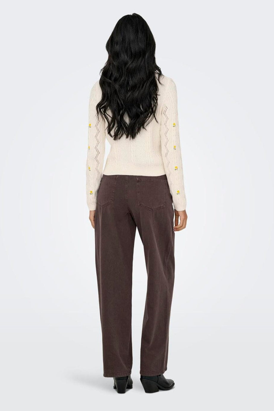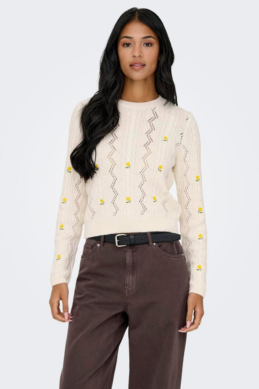 Only Onlrita Life Ls Embr Cable Knt Kleur: 4862605 Ecru Yellow Flower