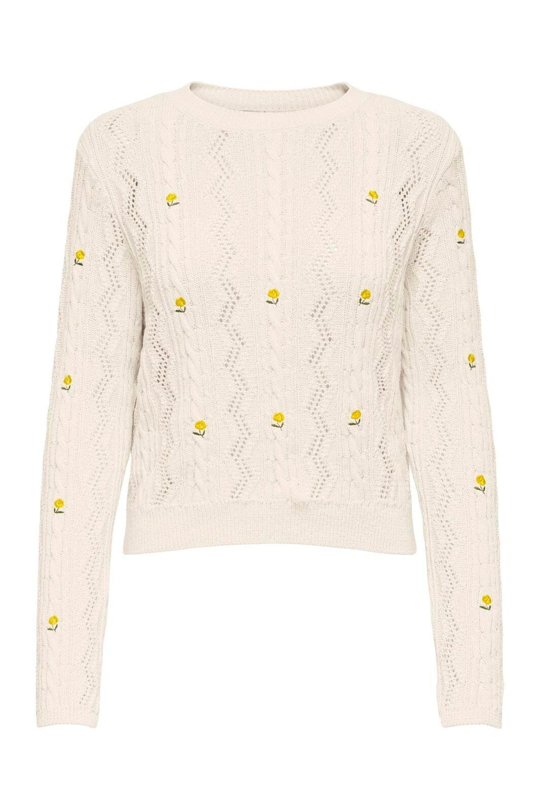 Only Onlrita Life Ls Embr Cable Knt Kleur: 4862605 Ecru Yellow Flower