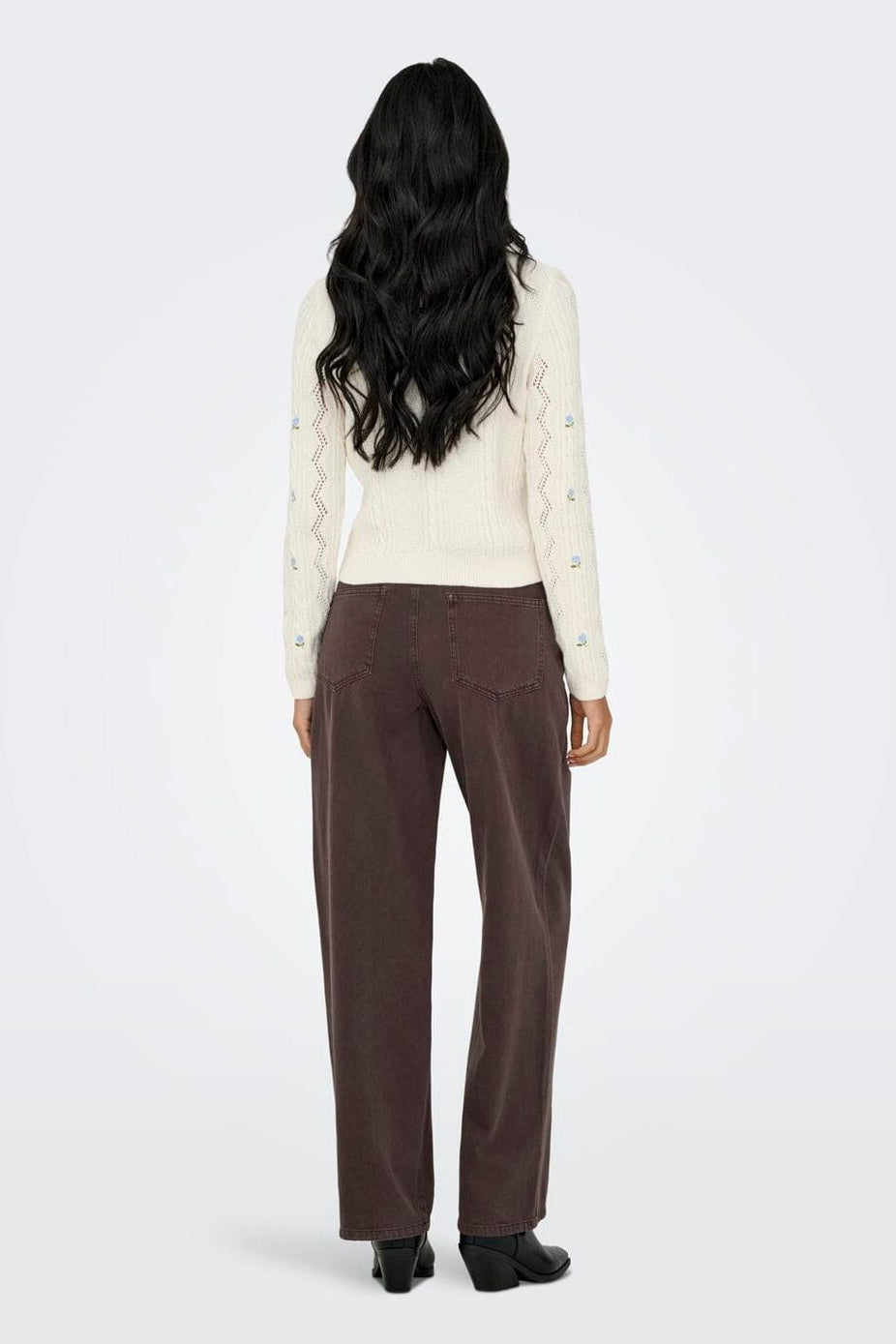 Only Onlrita Life Ls Embr Cable Knt Kleur: 4862606 Ecru Cashmere Blue Flower