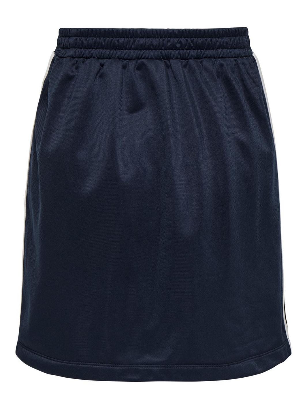 Korte sportieve rok van Only in donkerblauw. Het heeft witte strepen aan de zijkanten en een losse pasvorm die het geschikt maakt voor zowel training als dagelijks gebruik.