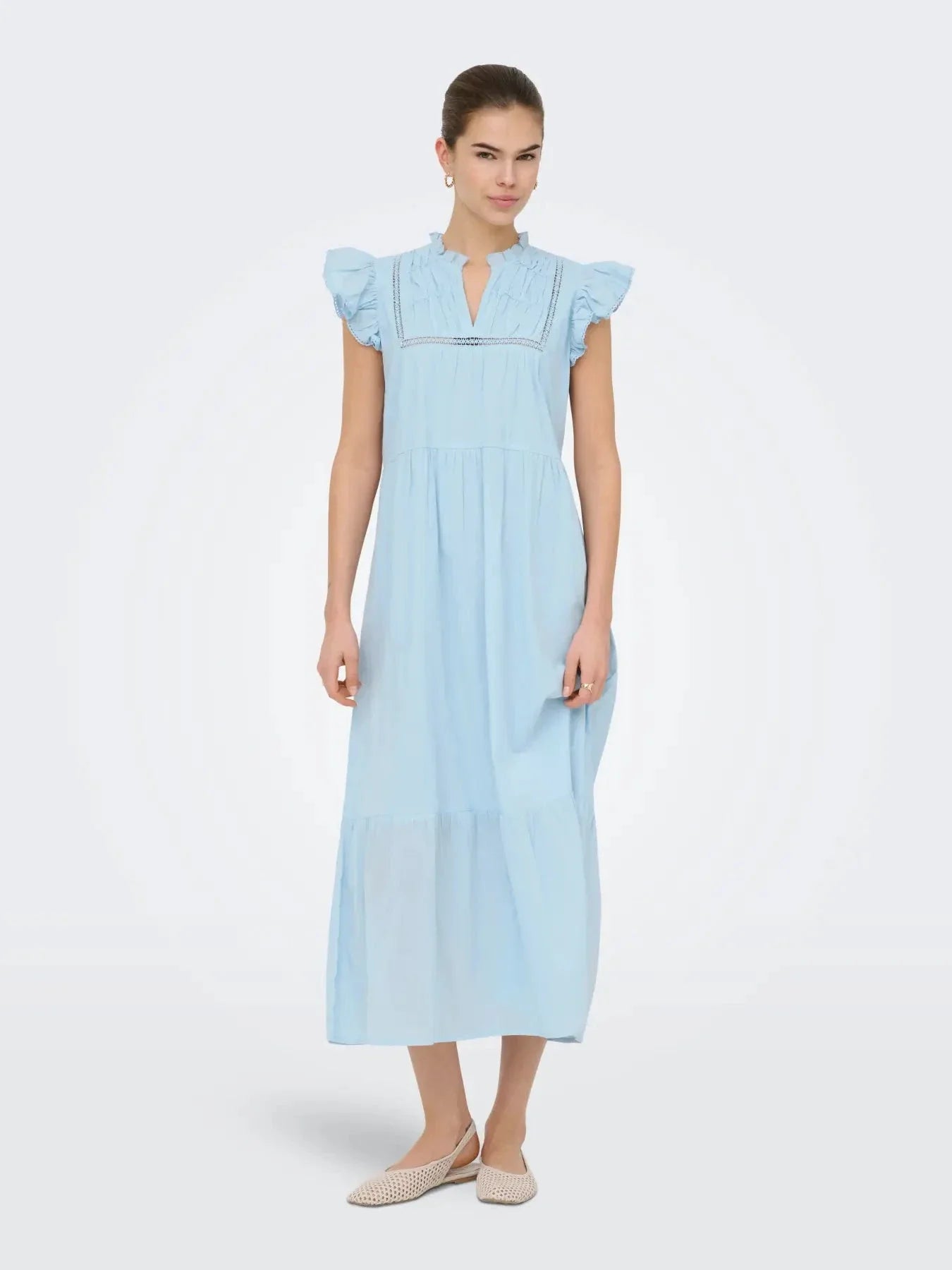Only Onltea-Idris S/L Frill Tape Dress Kleur: 5014281 Dream Blue