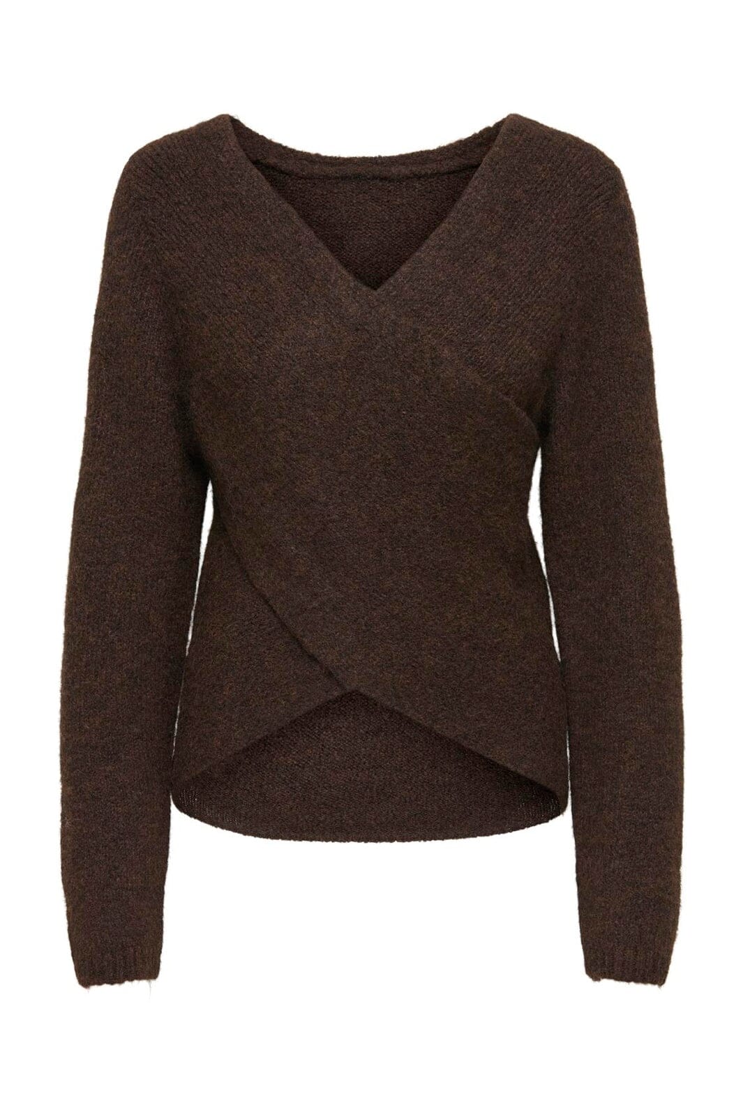 Omkeerbare gebreide trui van Only in donkerbruine kleur. De trui heeft een V-halsontwerp aan de ene kant en een ronde hals aan de andere kant.