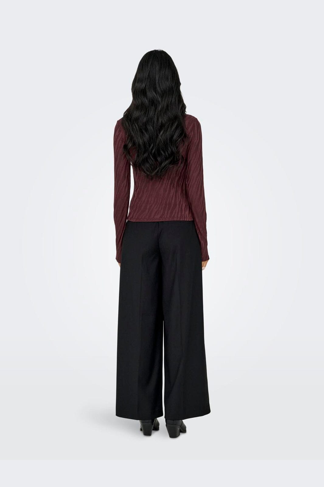 Langarmtop van Only met zebraprint in donker chocoladekleur. Het topje heeft een ronde halslijn en een slim fit-pasvorm die een aansluitende silhouet biedt.