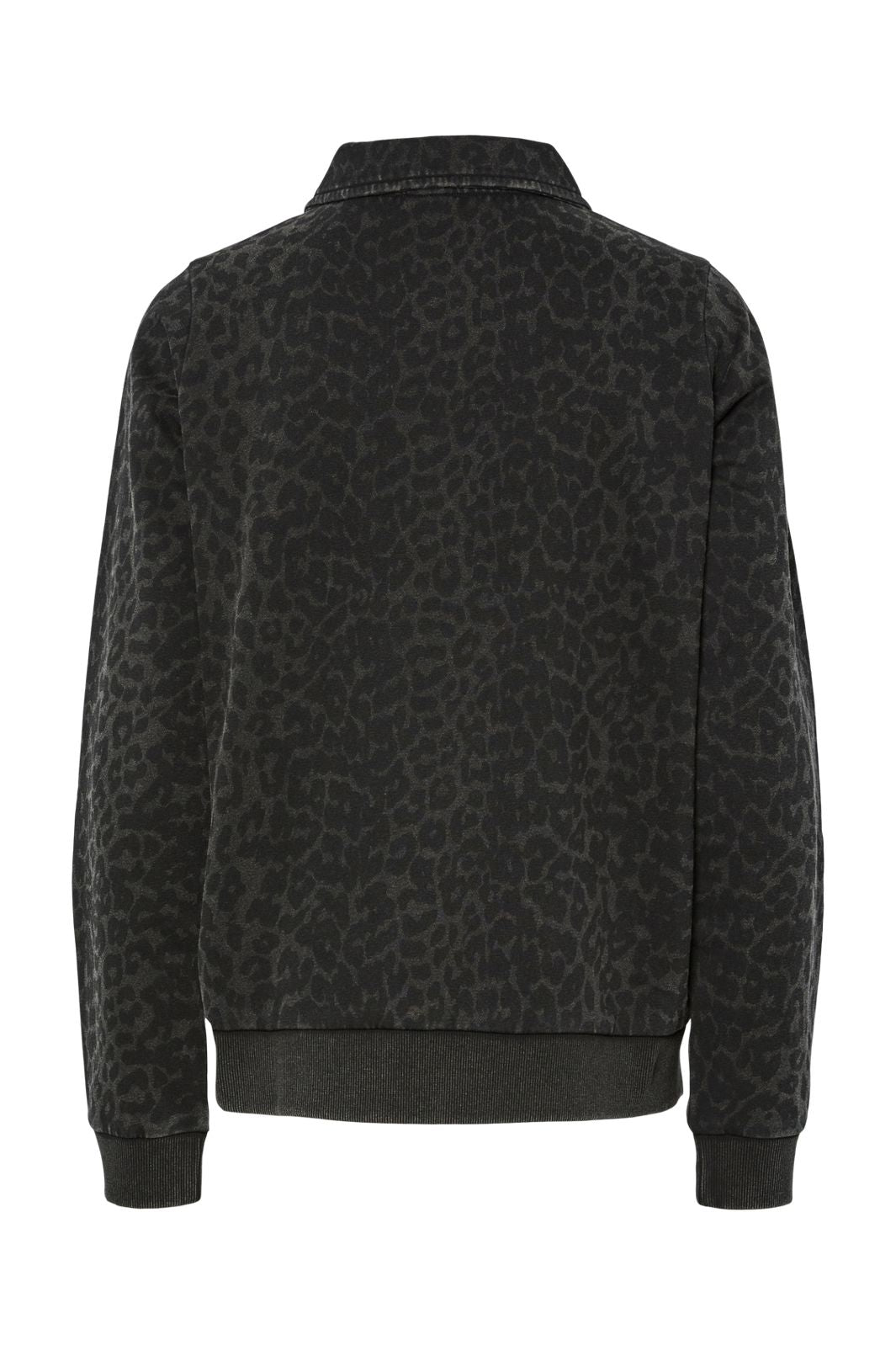 Lange mouwen polo van Pieces met luipaardprint in zwart en acid wash-finish. De polo heeft ribgebreide manchetten en een drieknoopsluiting aan de voorkant.