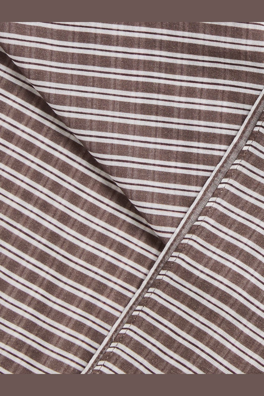 Vierkantige sjaal van Pieces in bruin en wit. Gemaakt van biologisch katoen met dwarsstrepen. De vierkante vorm van de sjaal biedt veel mogelijkheden om het te stylen.