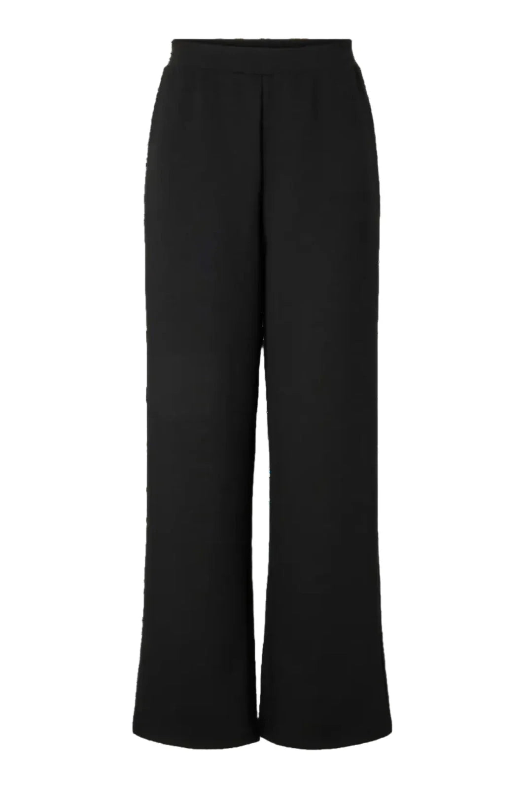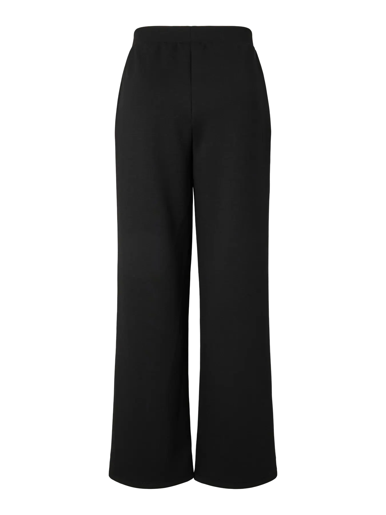 Zwarte wide pants van Pieces met een hoge taille en een losse pasvorm. De broek is effen zwart en heeft een elastische tailleband.