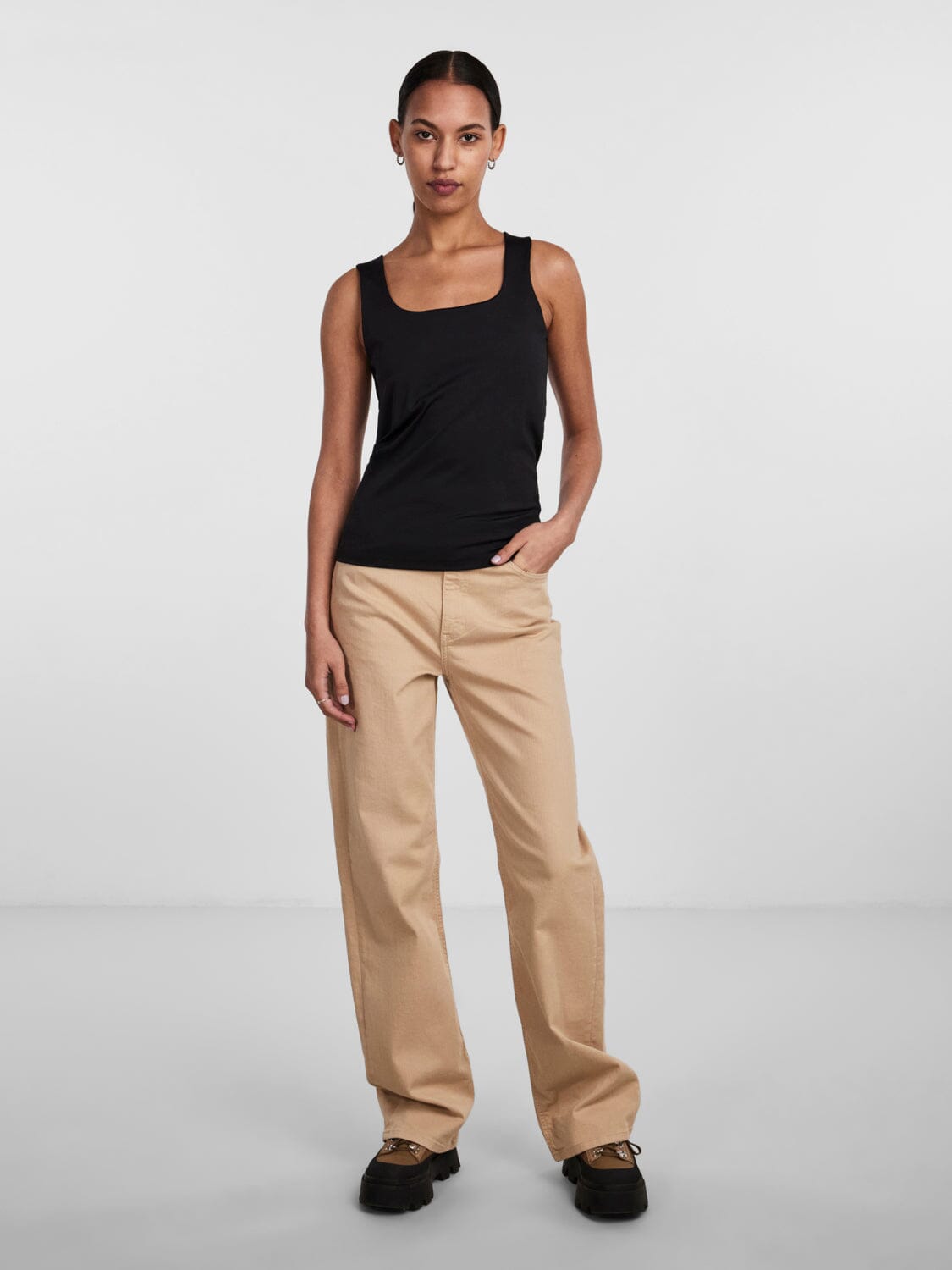 Zwarte tanktop van Pieces met vierkante halslijn en brede bandjes. De top heeft een aansluitende pasvorm en is gemaakt van een zachte en elastische stof.