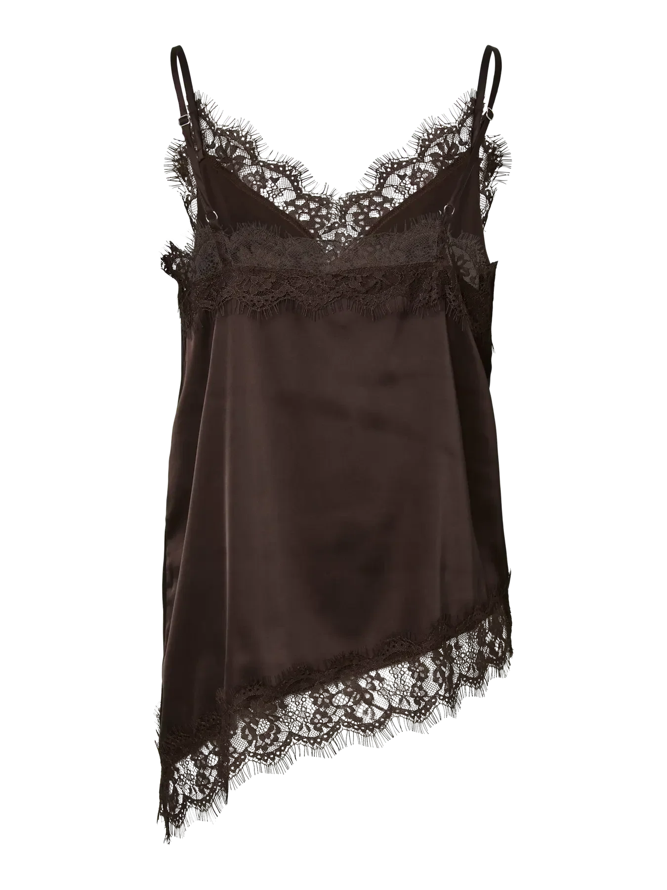 Pieces Pcnomi Strap Satin Lace Top Kleur: 5072978 Hot Fudge