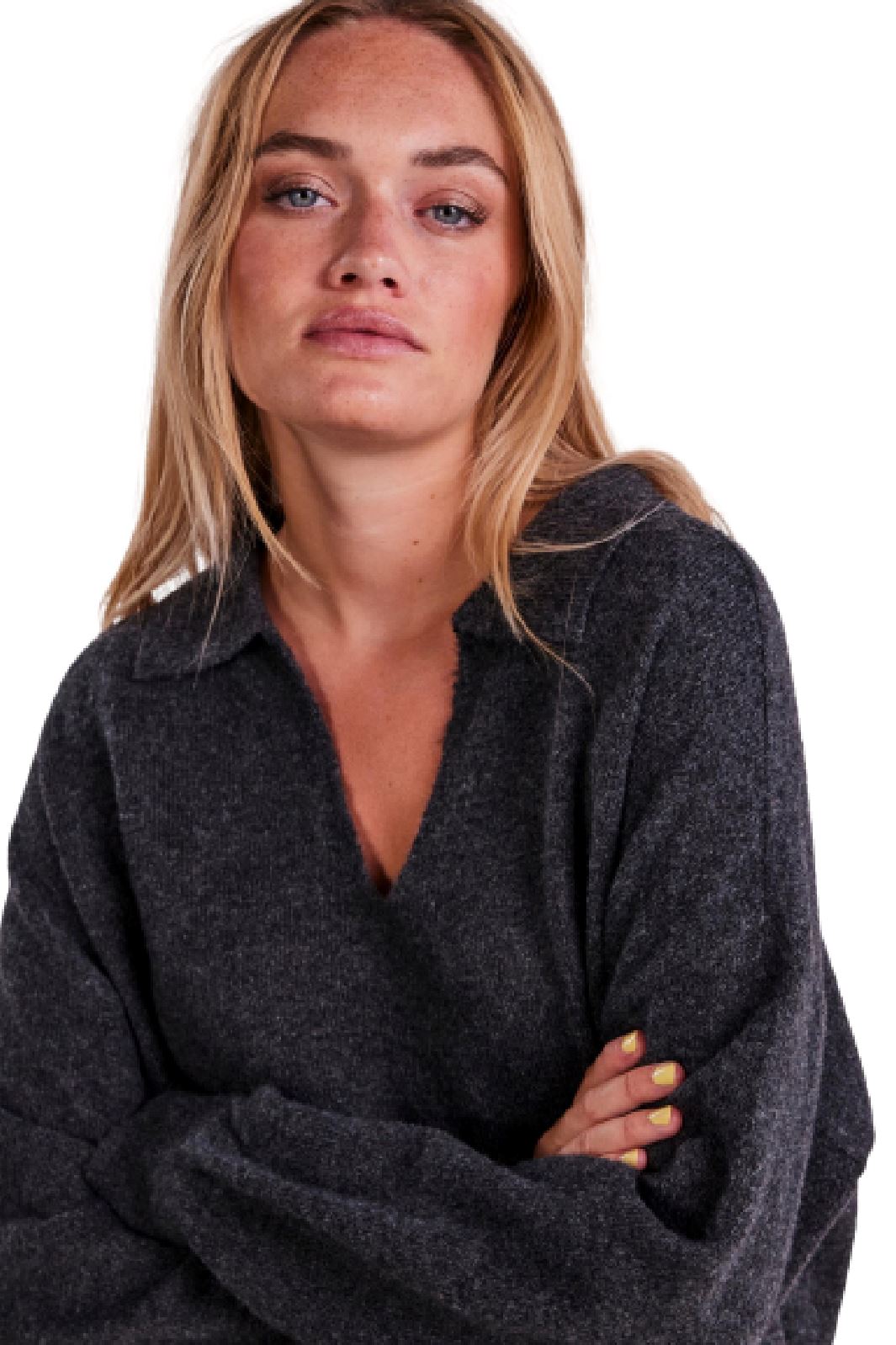 Pieces Pcnoola Ls Oversize Polo Knit Kleur: Dark Grey Melange